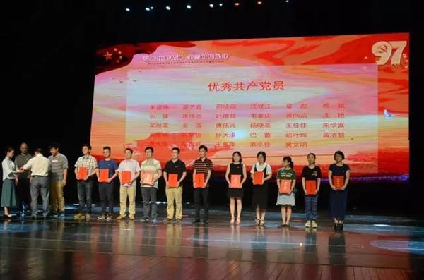 在庄严的国歌中,主题党日活动拉开序幕,大会由校党委副书记夏开堂主持。院长、党委副书记黄杭娟宣读校党委表彰决定。朱建炜等29人获“浙江艺术职业学院优秀共产党员”称号,刘梦伟等9人获“浙江艺术职业学院优秀党务工作者”称号,舞蹈系党总支等5个基层党组织获“浙江艺术职业学院先进基层党组织”称号,彭云波等3人获“第三届最受师生喜爱的书记”称号。吴莘超和校党委班子成员分别为各项荣誉获得者颁奖。