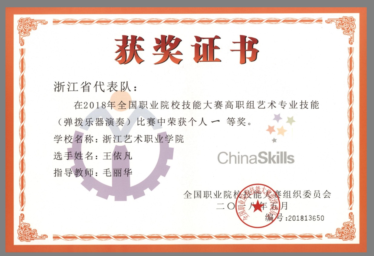 每一名优秀选手的背后,必然有着一位辛劳付出、倾囊相授的指导老师,每一份成绩和荣誉的取得,都离不开老师长年累月的点滴教学和无私协助。浙江艺术职业学院音乐系14民乐一贯班的王依凡同学在2018年全国职业院校技能大赛艺术专业技能赛项获得高职组一等奖,她的专业指导教师,正是国家一级演奏员、浙江艺术职业学院音乐系教授毛丽华。