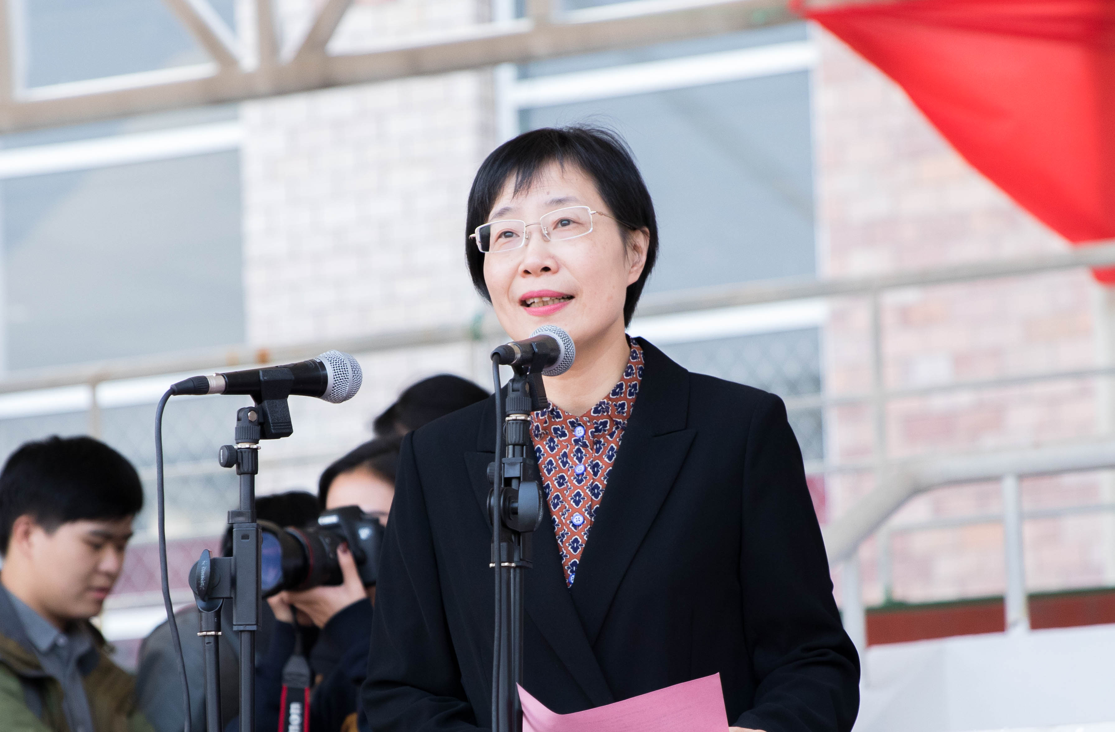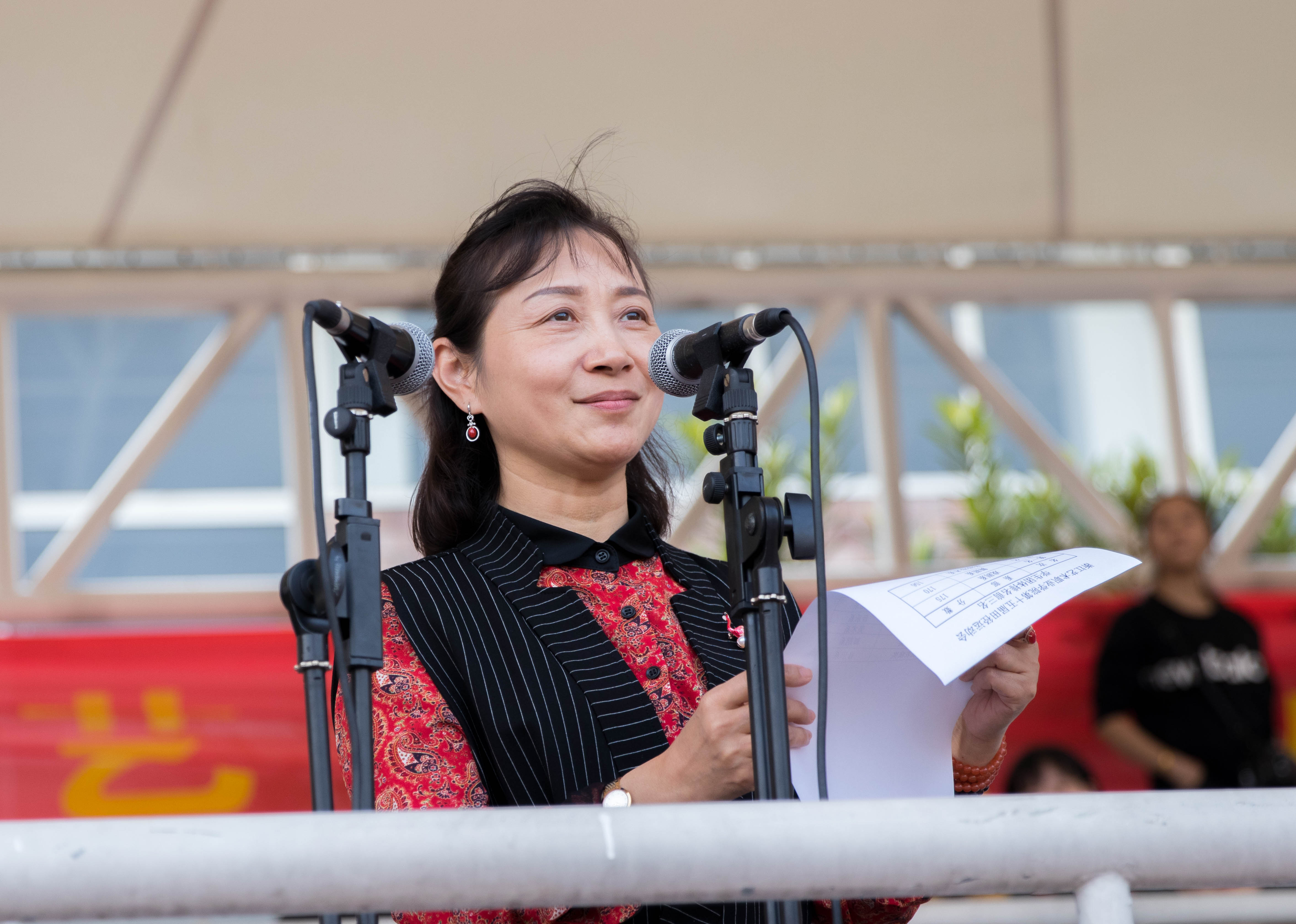 校党委书记朱海闵致闭幕词。她代表学校向在本届运动会中取得优异成绩的代表队和运动员们表示热烈的祝贺。向为本届运动会付出辛勤努力的所有工作人员、学生志愿者们表示衷心的感谢。她引用习近平总书记在全国教育大会上指出的“要树立健康第一的教育理念,开齐开足体育课,帮助学生在体育锻炼中享受乐趣、增强体质、健全人格、锤炼意志”来强调体育锻炼与个人修养的密切关系。她表示,每年一届的田径运动会是学校加强体育工作的重要载体和展示窗口,目的是要在全校上下营造浓厚的体育氛围,让全体师生养成良好的体育锻炼习惯,用“更快、更高、更强”的体育精神去披荆斩棘,不断向前。她指出,比赛定格一瞬间,青春飞扬心永恒。运动会虽然只有短短两天,但我们每一次的出发、奔跑、腾跃、冲刺,无一不是挥洒激情、展示青春、突破自我的有力见证。有人收获奖牌和荣誉,有人得到经验和教训,每个人都将培养出永不服输、奋勇争先的拼搏精神。运动会给予我们的真正意义是一种积极向上的态度、一种势在必得的力量、一种顽强奋斗的品质、一股永不磨灭的精气神。她希望广大师生不忘初心,牢记使命,在学校推进高水平建设、高质量发展的新征途中继续把奋勇拼搏、力争上游的精神传承并发扬光大。