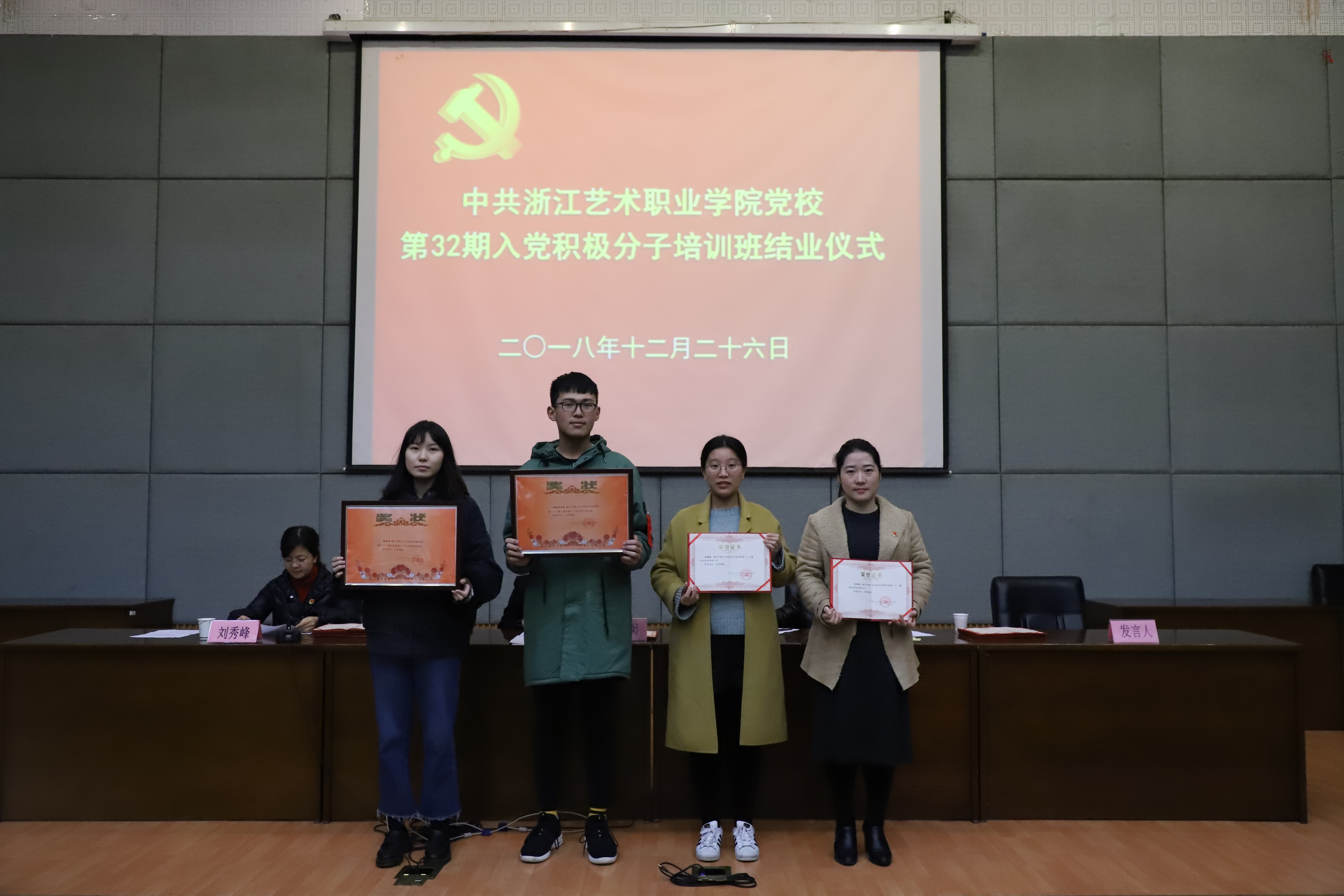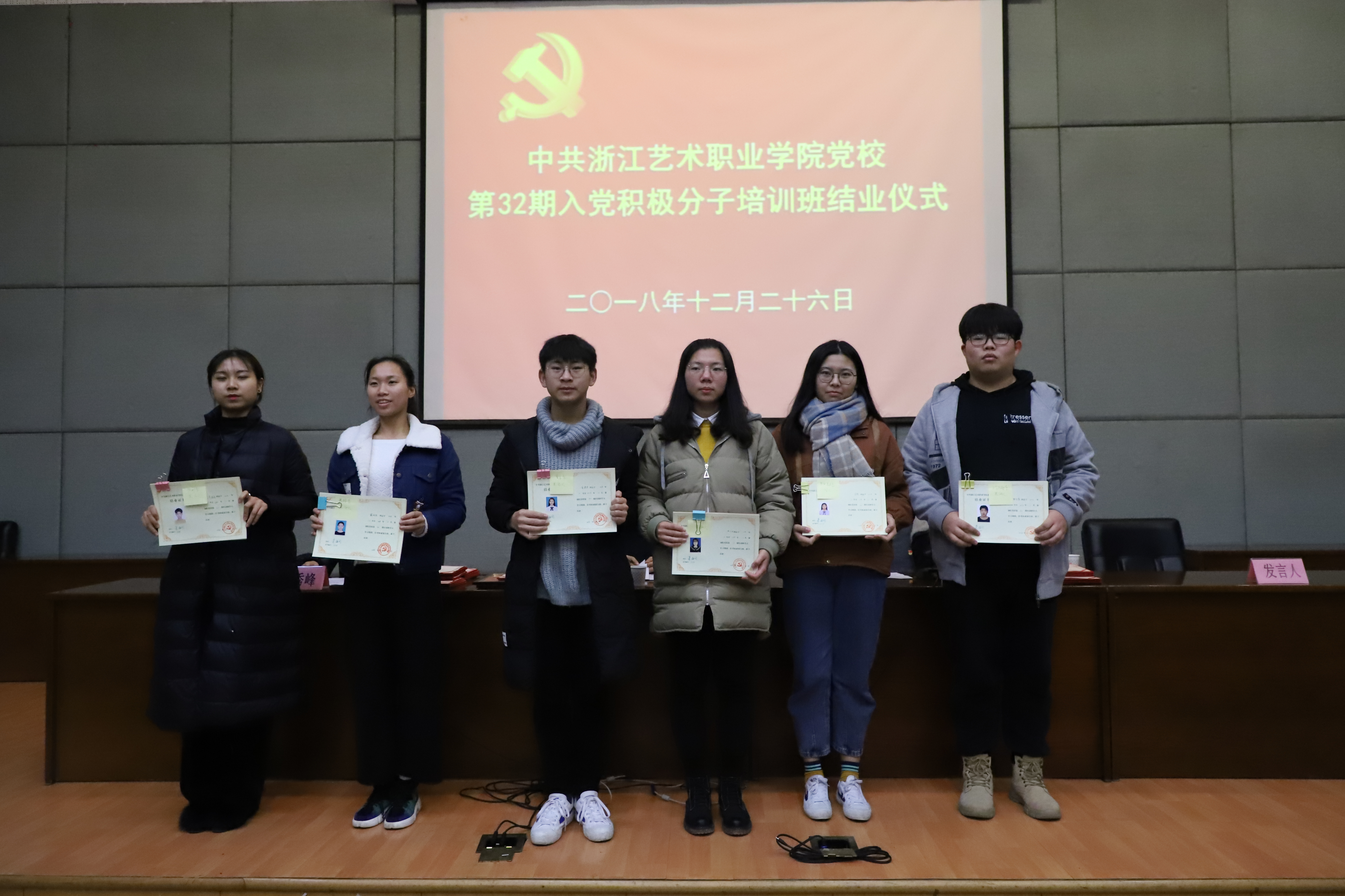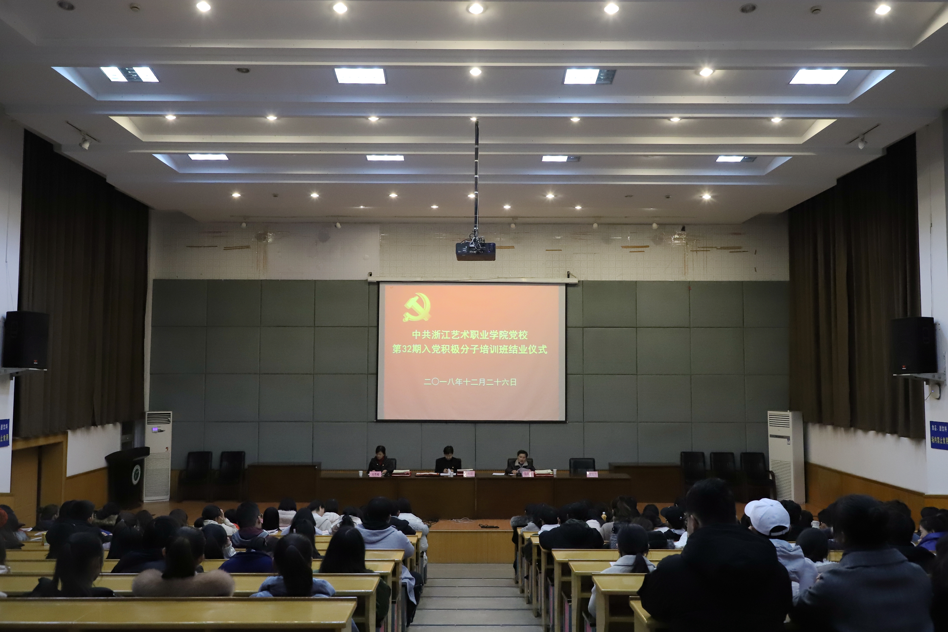 12月26日晚,浙江艺术职业学院党校第32期入党积极分子培训班结业典礼在图书信息中心报告厅举行。党委书记、党校校长朱海闵,党委委员、党委宣传部部长、党校副校长马向东,社会科学部负责人刘秀峰,各系党总支(副)书记、党校任课教师、班主任和本期培训班学员等160多人出席。马向东主持大会。