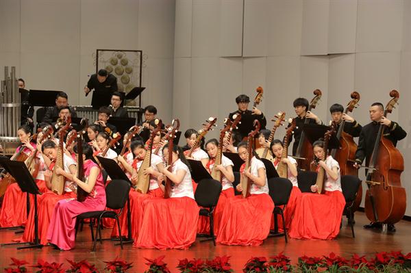 江南丝竹《中花六板》《吹歌》根据江南传统名曲《老六板》《骑驴吹仔》改编而来,由音乐系副主任高澄明、民乐教研室主任王慧芳等教师共同演奏,为音乐会带来了缕缕清新柔美的风。