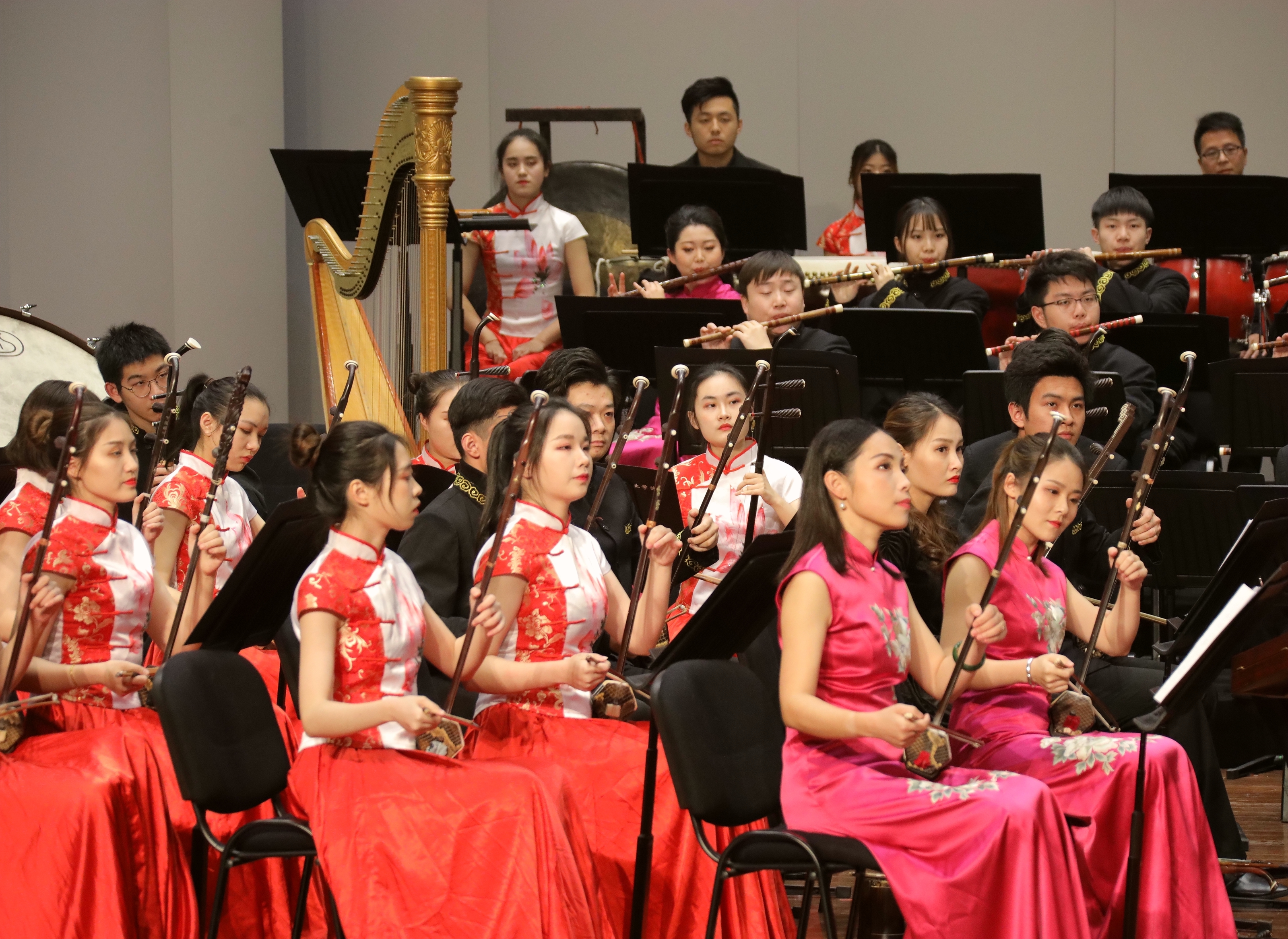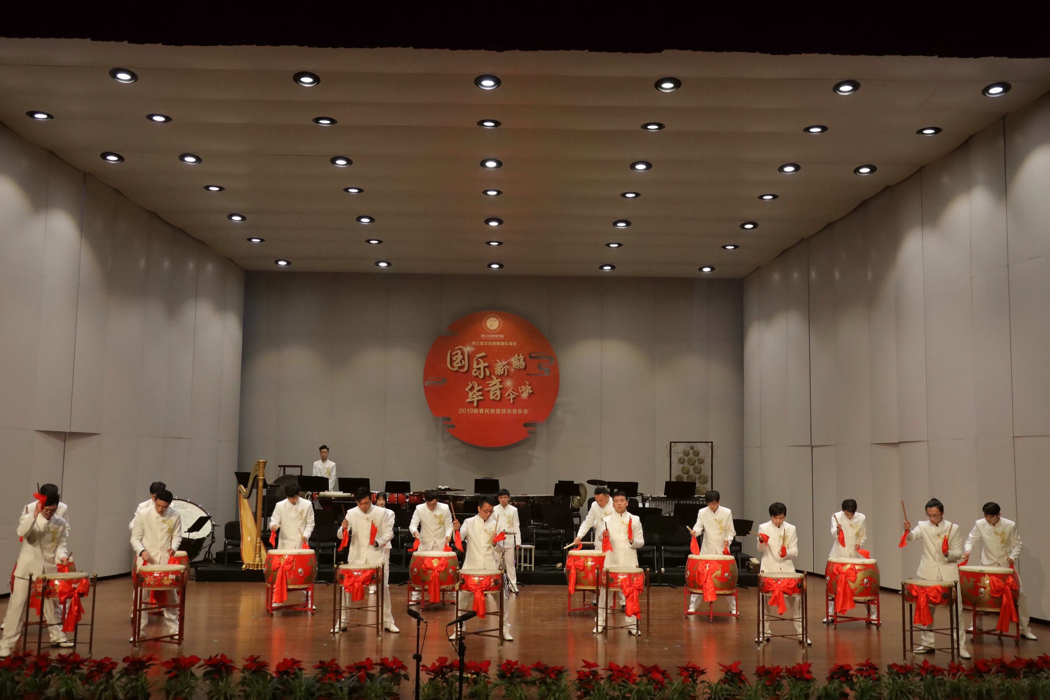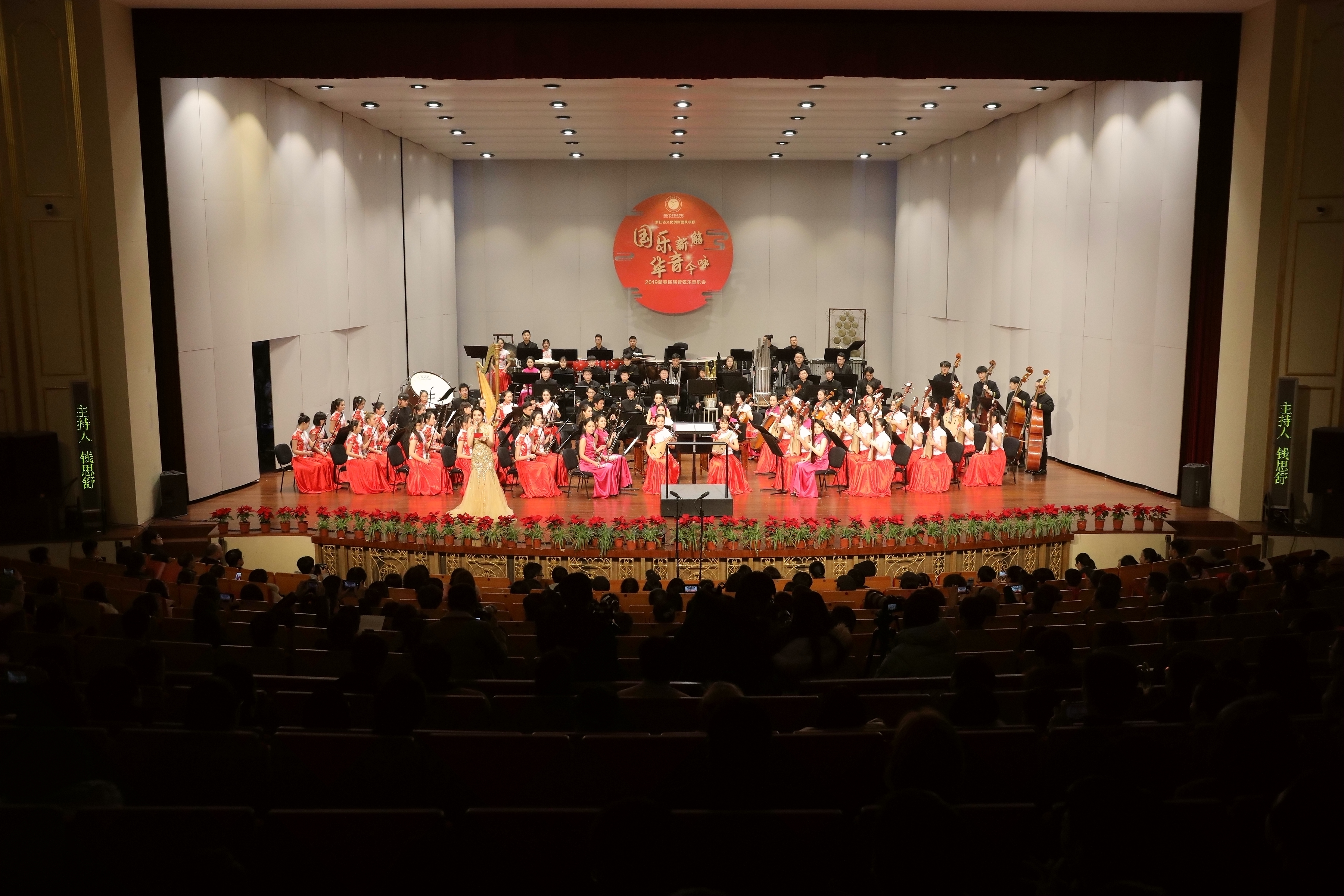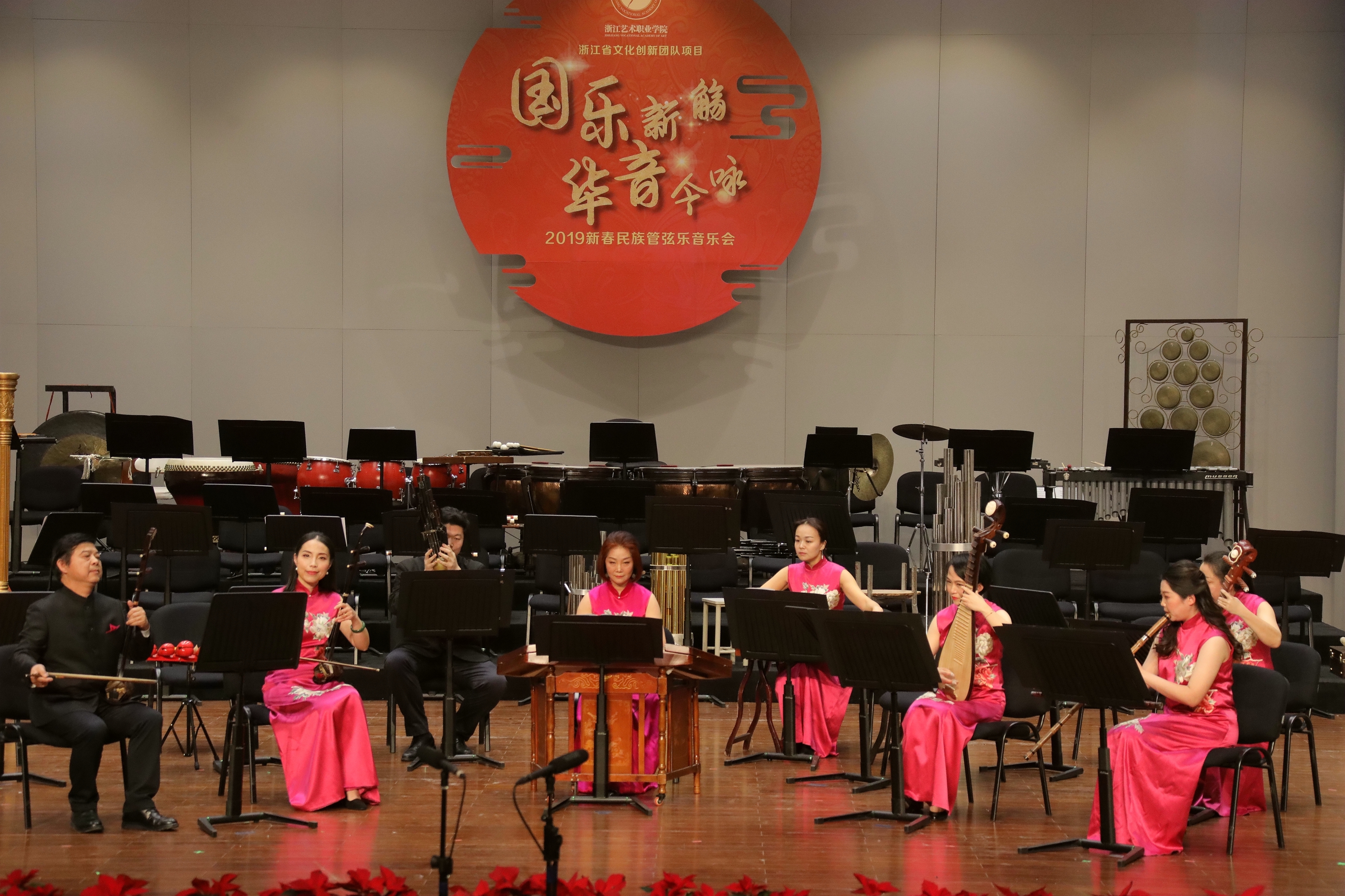 2019踏着欢歌声走来,由浙江省委宣传部、浙江省文化和旅游厅主办的2019浙江省属文艺院团新年演出季,1月8日晚在浙江音乐厅上演了2019新春民族管弦乐音乐会。音乐会由浙江艺术职业学院承办,国乐新觞,华音今咏,感染了现场观众。这是浙江艺术职业学院继10月张凌琵琶独奏音乐会、11月吴樟华竹笛独奏音乐会后,再一次在浙江音乐厅奏响国乐之音。