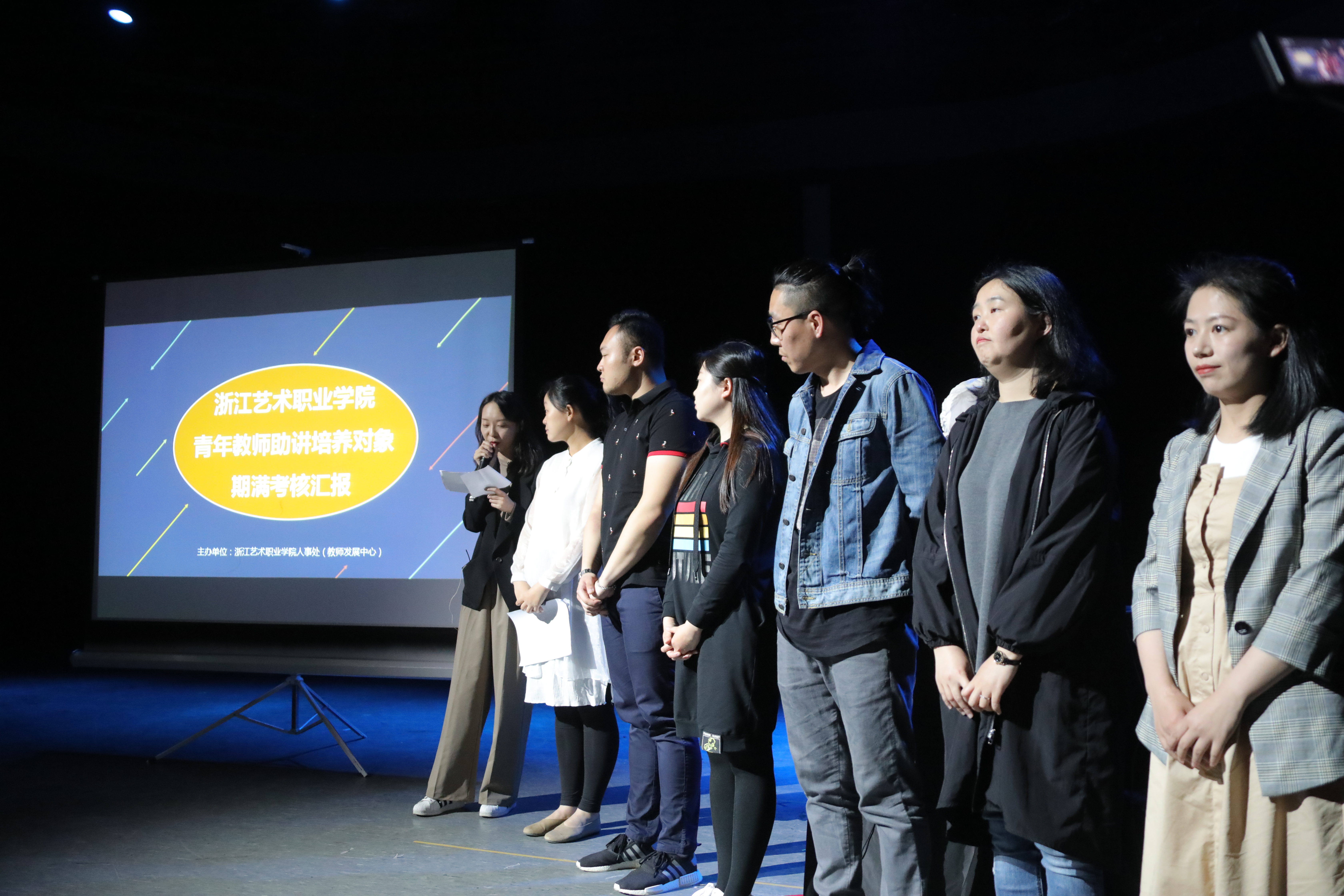 4月18日下午,浙江艺术职业学院2018年青年教师助讲培养对象期满考核汇报在我校七号演播厅(黑匣子剧场)隆重举行,青年教师助讲培养是我省高校全面实施的一项制度,旨在帮助青年教师尽快胜任高校教学岗位,顺利实现角色转变,适应新的环境和工作,提高青年教师自身素质,切实提高和保障教育教学质量。校系领导班子成员、相关部门负责人、指导教师作为评委参加了本次汇报活动,同时吸引了众多师生前来观摩。