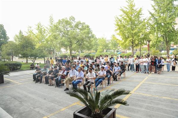 钱法成致辞。他表示,非常高兴来到浙艺和师生们共同庆祝中华人民共和国成立70周年,也很开心有作品参展。他怀着喜悦的心情向师生们讲述了他青年时期的学艺经历,分享了自己70多年来的艺术之梦,勉励正值青春的同学们珍惜美好新时代的学习机会,学有所成,将来为社会服务。他祝浙艺越办越好,祝老师们身体健康。