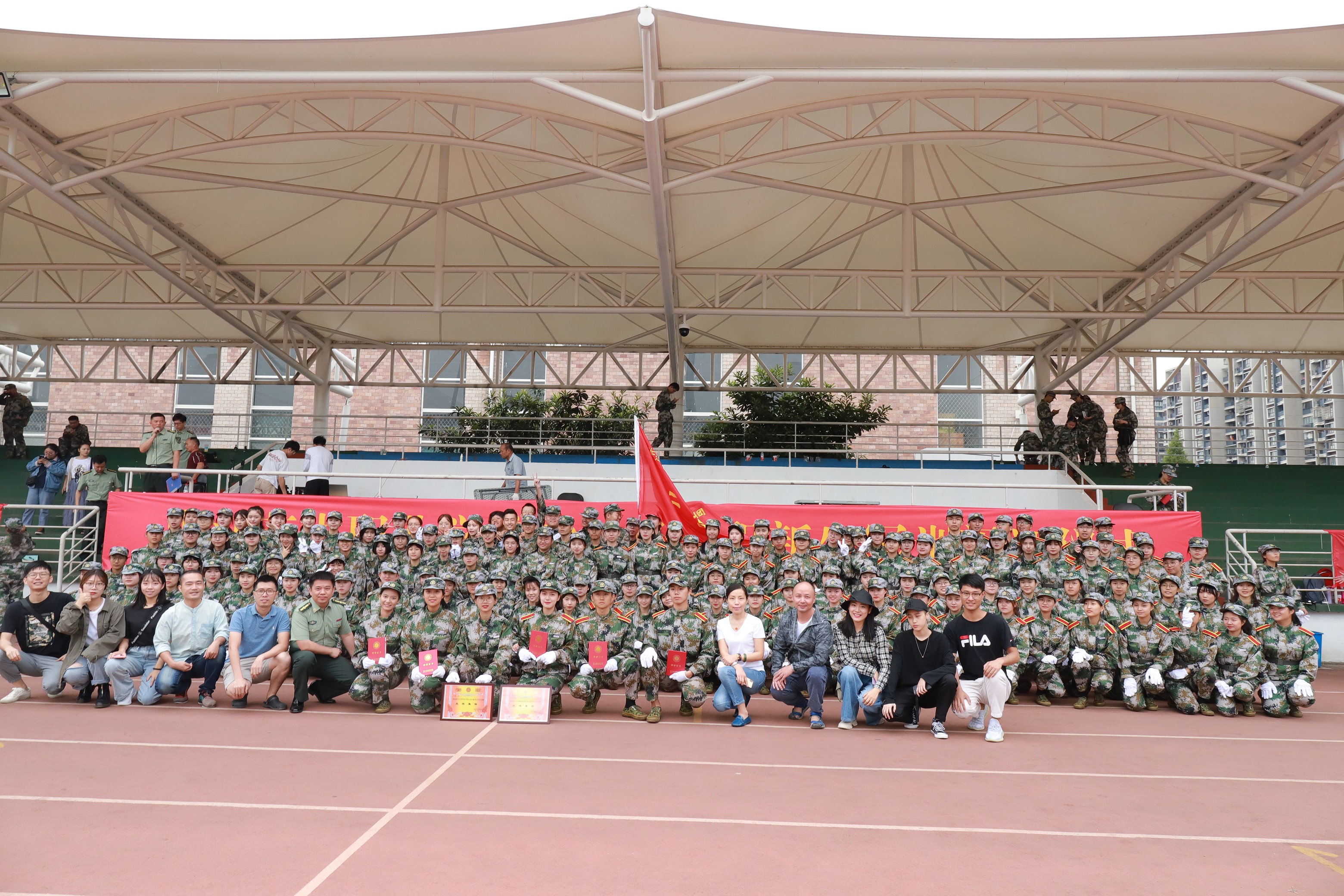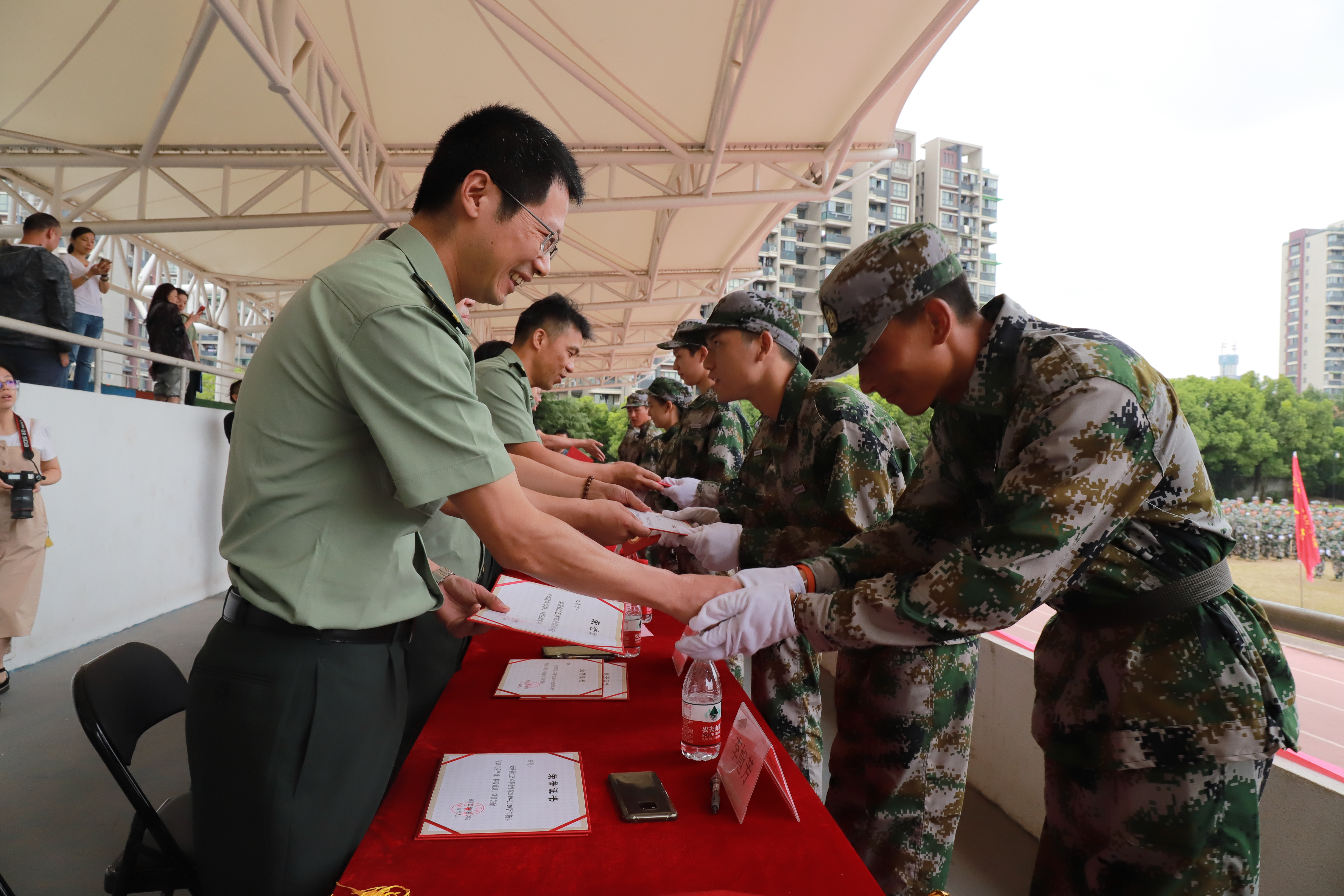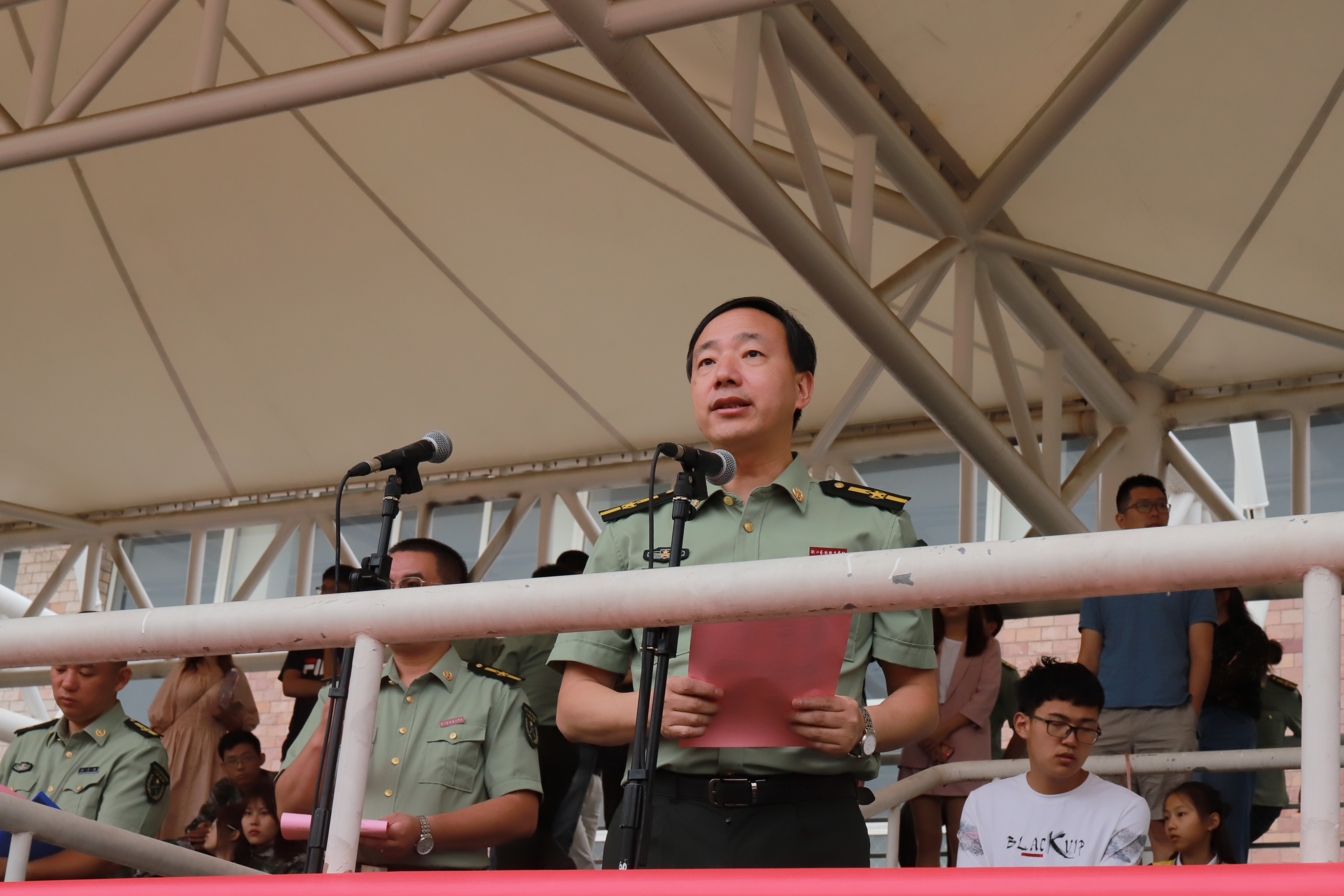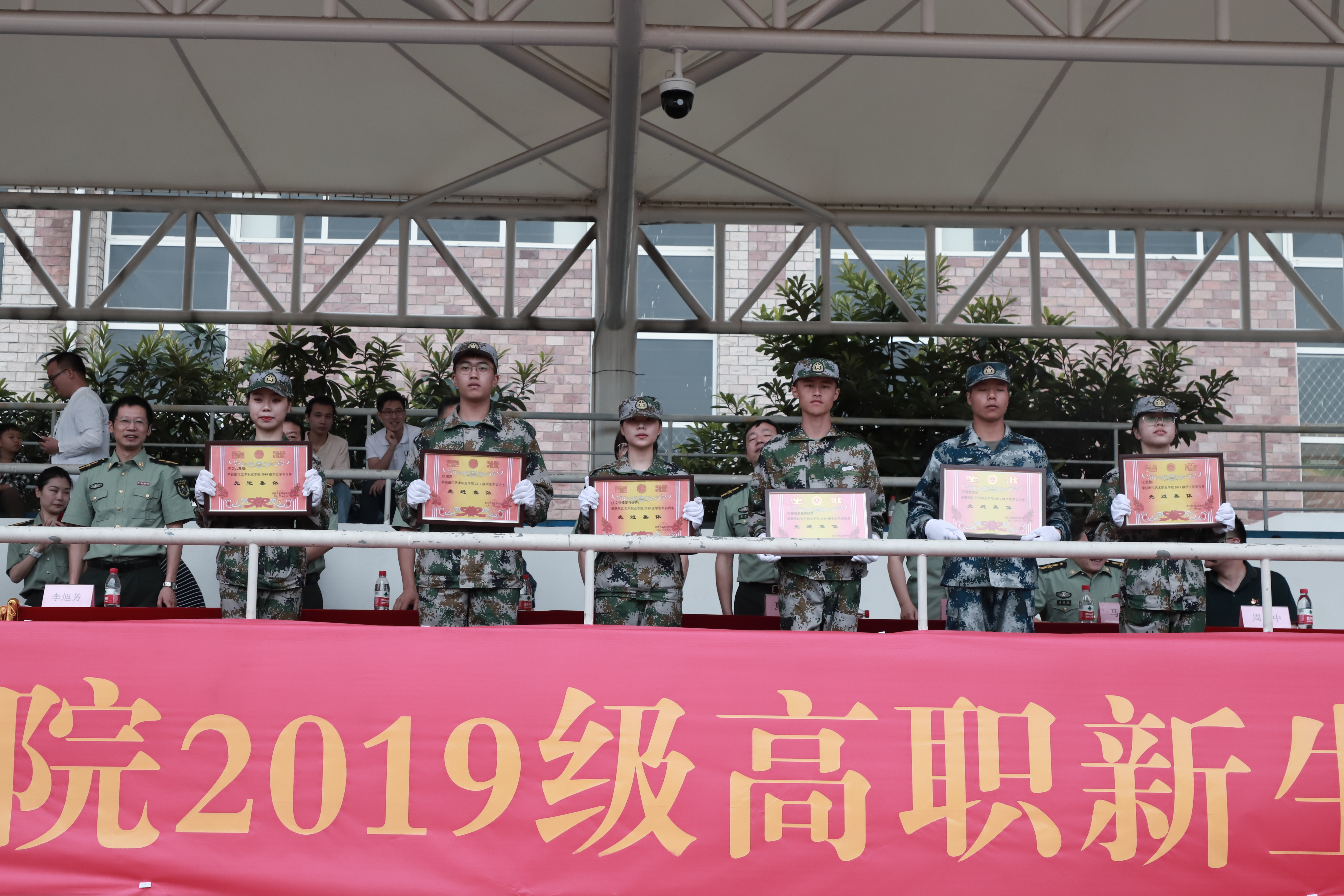 9月21日上午,浙江艺术职业学院2019级高职新生军训闭训仪式在学校田径场举行。校党委书记朱海闵,党委副书记夏开堂,党委委员、副院长沈军甫、支涛,党委委员、组织部部长王涛,党委委员、宣传部部长马向东,相关职能系部负责人、辅导员、班主任参加闭训仪式。