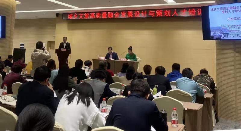 11月11日至17日,由文化和旅游部人事司主办,浙江艺术职业学院承办的城乡文旅高质量融合发展设计与策划人才培训班在浙江杭州举办。来自全国28个省(自治区、直辖市)文化和旅游系统相关企事业单位的负责人、乡村景区项目负责人、城乡文创设计师等共计78名学员参加学习。浙江艺术职业学院党委副书记夏开堂出席开班仪式并致辞。