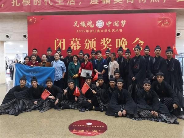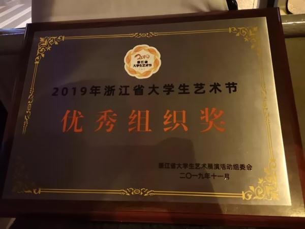 11月1日晚,2019年浙江省大学生艺术节闭幕式颁奖晚会在浙江理工大学举行。此次颁奖晚会精选了一批本届艺术节专业水平高、具有鲜明地域特色和学校专业特点的节目进行了集中展演。浙江艺术职业学院群舞《西施别越》、“校园十佳歌手”之一陆祎杨参加了颁奖晚会演出。