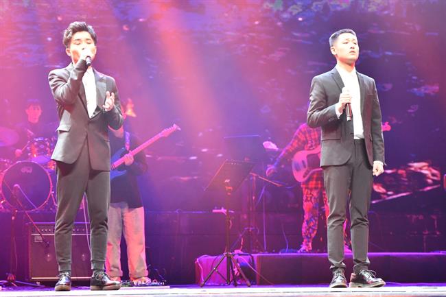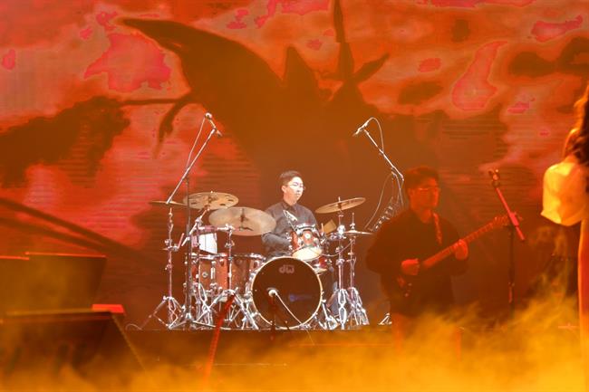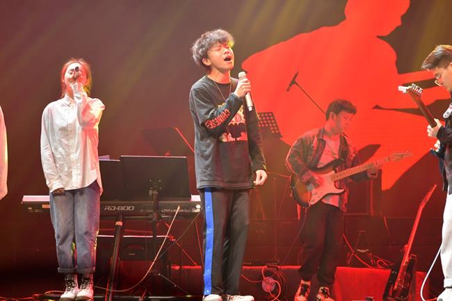 今年恰逢新中国成立70周年华诞,本次演出的大部分作品都紧紧围绕“爱国”主题,演绎了一曲曲红色经典歌曲。开场曲《追寻》选自影片《建国大业》,周星宇、王俊祥二位男生演绎得深情大气。郑舒蔓同学带来的《九儿》是一首难度高又具有很强社会影响力的歌曲,她张弛有度的演唱深深感染了观众。《新长征路上的摇滚》是由中国摇滚教父崔健原唱的经典歌曲,经周菲戈同学与一众优秀乐手的精彩演绎,迅速掀起了全场高潮。同样具有摇滚精神的《我爱你中国》《大中国》两部作品,17级流行班娄新宇、汪琪、杨昊烨、颜志豪、张凌康五名男生的激情唱响赋予了歌曲新的风采。有过了燃情四射,也有温柔的诉说。歌曲《祖国儿女》、电影《建党伟业》主题曲《有一天》、老歌新唱《映山红》、影片《芳华》主题曲《绒花》、纪念5.12汶川地震的公益歌曲《爱与希望》这些曾在荧屏、晚会屡屡唱响的歌当晚也亮相舞台,由两个毕业班的女生倾情演绎。萨克斯重奏《我的祖国》将经典红色歌曲改编为器乐曲,成为一大亮点。