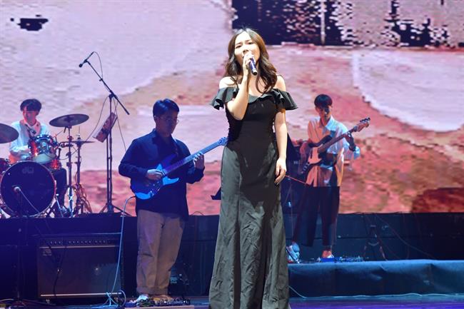 每年的流行音乐毕业专场汇报演出都会有教师原创作品,今年的演出的是管弦教研室教师郑云飞、现代流行音乐教研室教师金姬的作品。由郑云飞作词、作曲的《水火相容》是一首内涵深刻的歌,胡琼茹同学唱出了荡气回肠之感。金姬作曲、编曲的《爱玲说》是一首具有爵士风情的歌曲,歌手杨雅晴纯净、温暖的声线完美诠释了优雅的浪漫情怀,爵士小提琴的加入令作品充满风情。