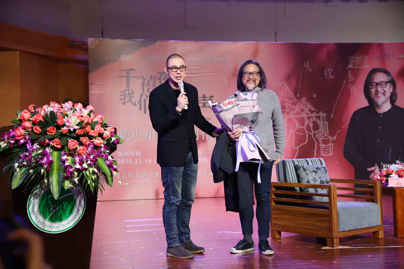 1214日,时隔10年,“亚洲剧场翘楚”、著名华人戏剧家赖声川再次来到我校与浙艺学子面对面,分享戏剧创作体会,畅谈创作来源和从艺经历。特邀嘉宾主持梅子担任分享会主持人。