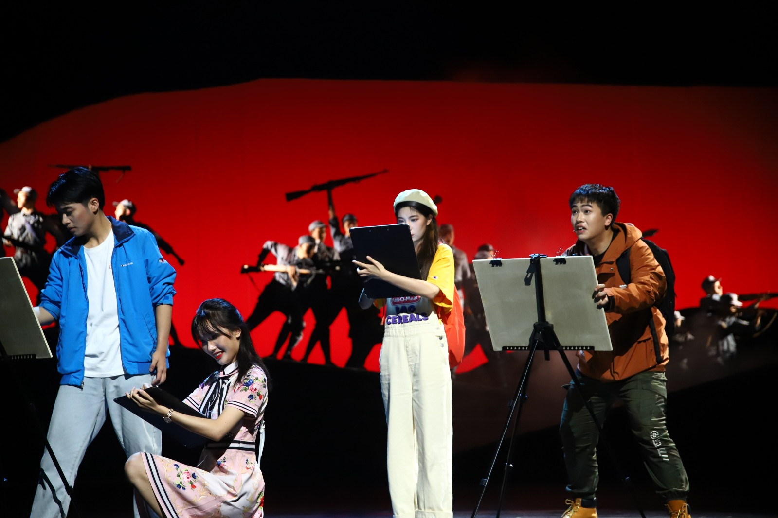 《清溪谣》中有一段剧情是四位大学生用随身带的画板挡雨,而新四军的战士用身体守护缴获得来的大炮,这正好形成了一个鲜明的对比,引人思索“如果战争来临,我们是否拥有前辈不屈的精神?”在剧中学,在行中思,在对比中悟,启发青年一代审视自身,让信仰之光照亮前行之路,是主创的追求之一。《清溪谣》总导演、戏剧系副主任、教授荆芳说,从5年前开始,每年都会组织表演艺术专业师生深入到长兴新四军苏浙军区旧址采风,进行实地艺术创作和教学。希望通过艺术作品的创作与呈现,使年轻人能够真正从心底认同这段光辉历史、敬畏革命先烈。