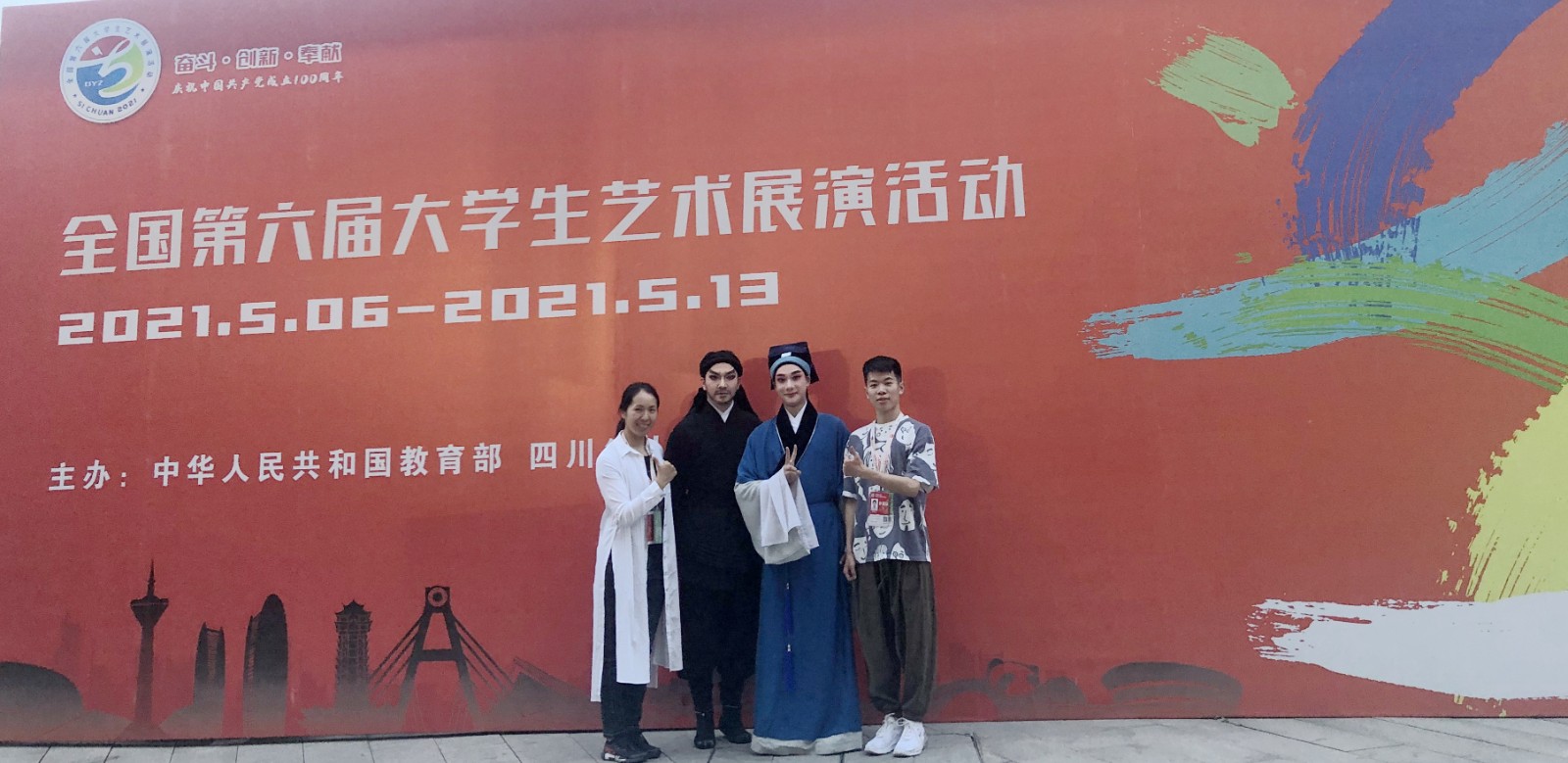 以“奋斗·创新·奉献”为主题的全国第六届大学生艺术展演活动5月6日至13日在四川成都举行。此次展演共有31个省(区、市)、新疆生产建设兵团和香港特别行政区、澳门特别行政区共198所高校264支代表队共6800余名师生参加。组委会从631个艺术表演类节目中评选出221个优秀表演类节目参加现场集中展演,戏曲节目全国仅6个,我校占一席。最终,浙江艺术职业学院选送的戏曲节目《珍珠塔·失塔》(指导教师:支涛、华渭强、缪海洁)和舞蹈节目《东流山上杜鹃红》(指导教师:李毅源、赵琼琳、杨博文)获一等奖。我校也是此次浙江省获得艺术表演类项目一等奖的唯一一所职业院校。