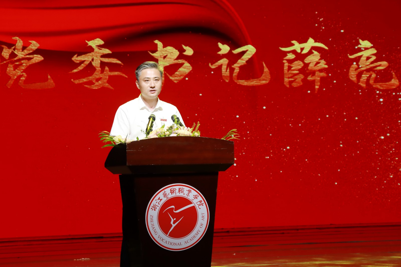 910日下午,在庄严的国歌声中,浙江艺术职业学院庆祝第37个教师节暨新学期全校大会在浙江实验艺术剧场拉开帷幕。大会主题为赓续百年初心,担当育人使命”,校党委班子成员薛亮、黄杭娟、夏开堂、章轲、徐芳、沈军甫、支涛、马向东、刘杨出席,全体教职员工参加。党委副书记夏开堂主持大会。