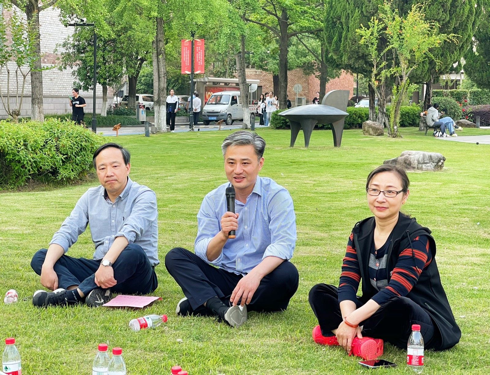 运动结束后,校领导与学生代表在中心花园的草坪欢坐畅谈,同学们反响热烈,现场气氛轻松活跃。同学们围绕“五四”青年的责任担当、疫情防控下的校园学习生活、校园文化活动、“艺起运动”平台的使用等话题各抒己见、畅所欲言。文教学院学生索南措姆说,通过参加乐跑、踢毽子等运动,大家的课余文化生活丰富起来了;设计学院学生王佳玉表示,学校推广的“艺起运动”平台,让周边的同学动起来了,大家的精神状态更积极向上了;音乐学院学生陈俊希望学校能定期举办一些小型文体活动,活跃校园气氛,提高大家的凝聚力。