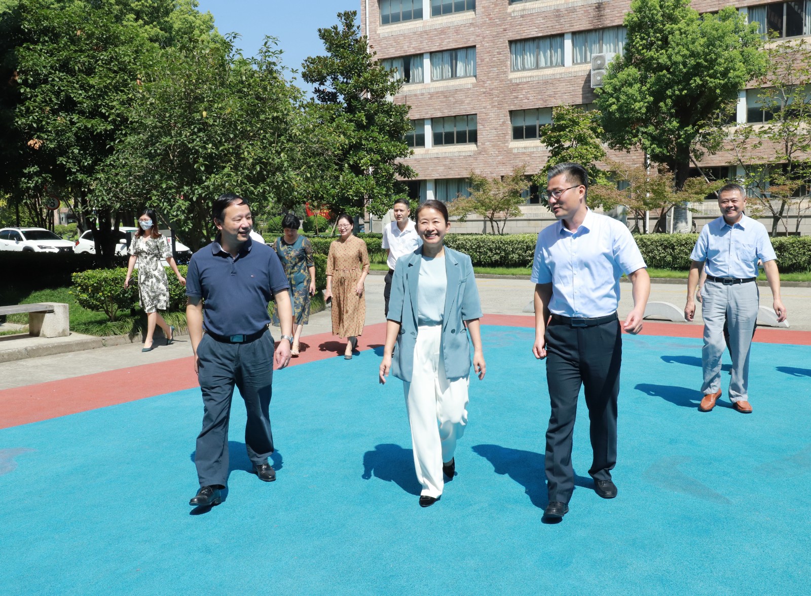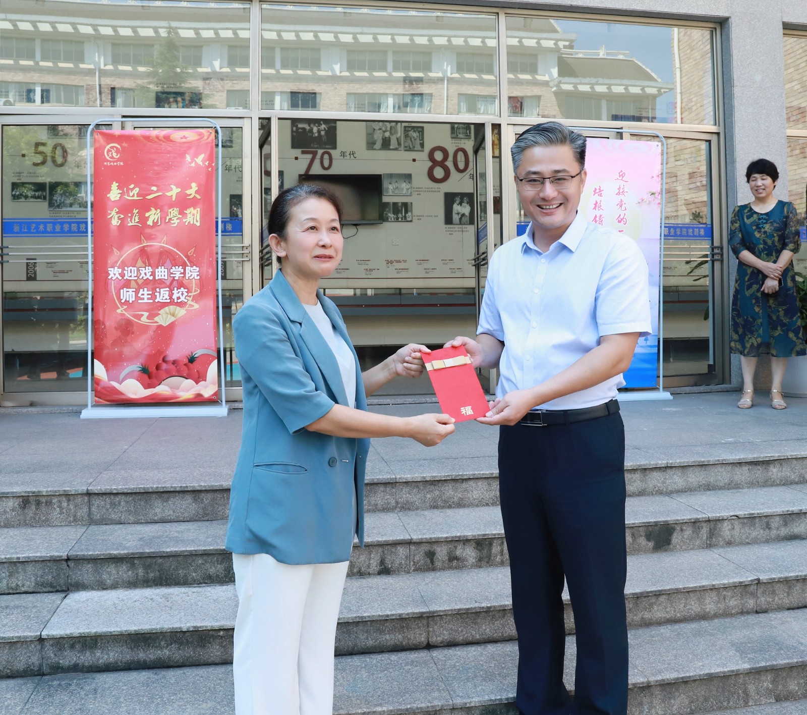 9月7日,滨江区人大常委会党组书记、主任应敏扬一行来浙江艺术职业学院进行教师节慰问,校党委书记薛亮、党委副书记夏开堂陪同。