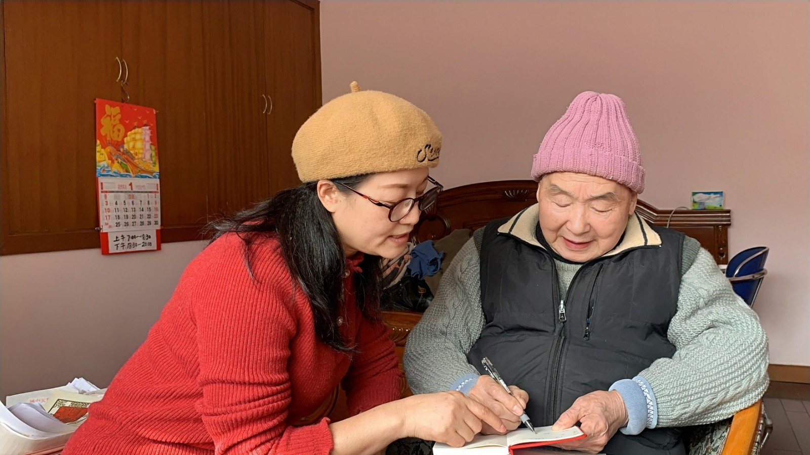 ▲向越剧表演艺术家吕瑞英请教语音问题