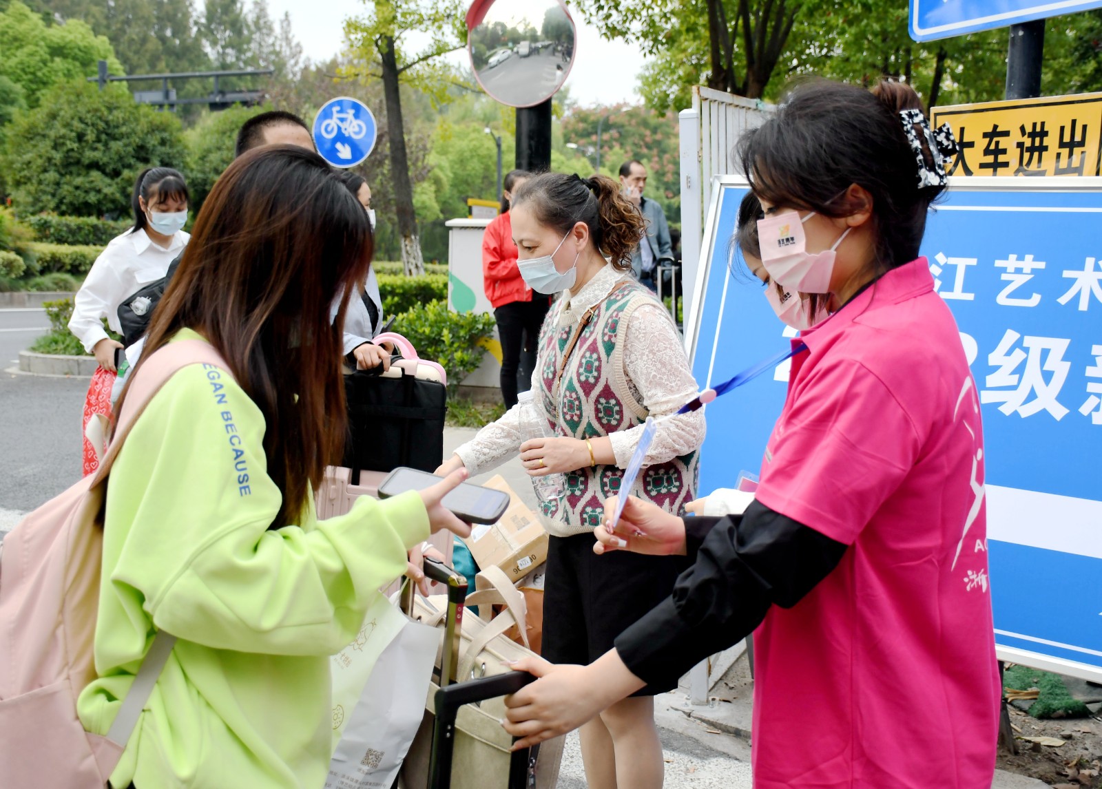 扫码测温、领取材料……一系列报到工作完成后,新生们正式开启浙艺之旅。来自义乌的公共文化定向专业新生朱含蕾,今年高考分数达到607分。她笑着说:“因为热爱艺术,对文化艺术有着浓厚的兴趣,之前学习过相关艺术门类,浙艺的专业很符合我的求学目标,希望在接下来的大学生活中学好专业课,积极参加社团活动,度过充实而有意义的三年。”