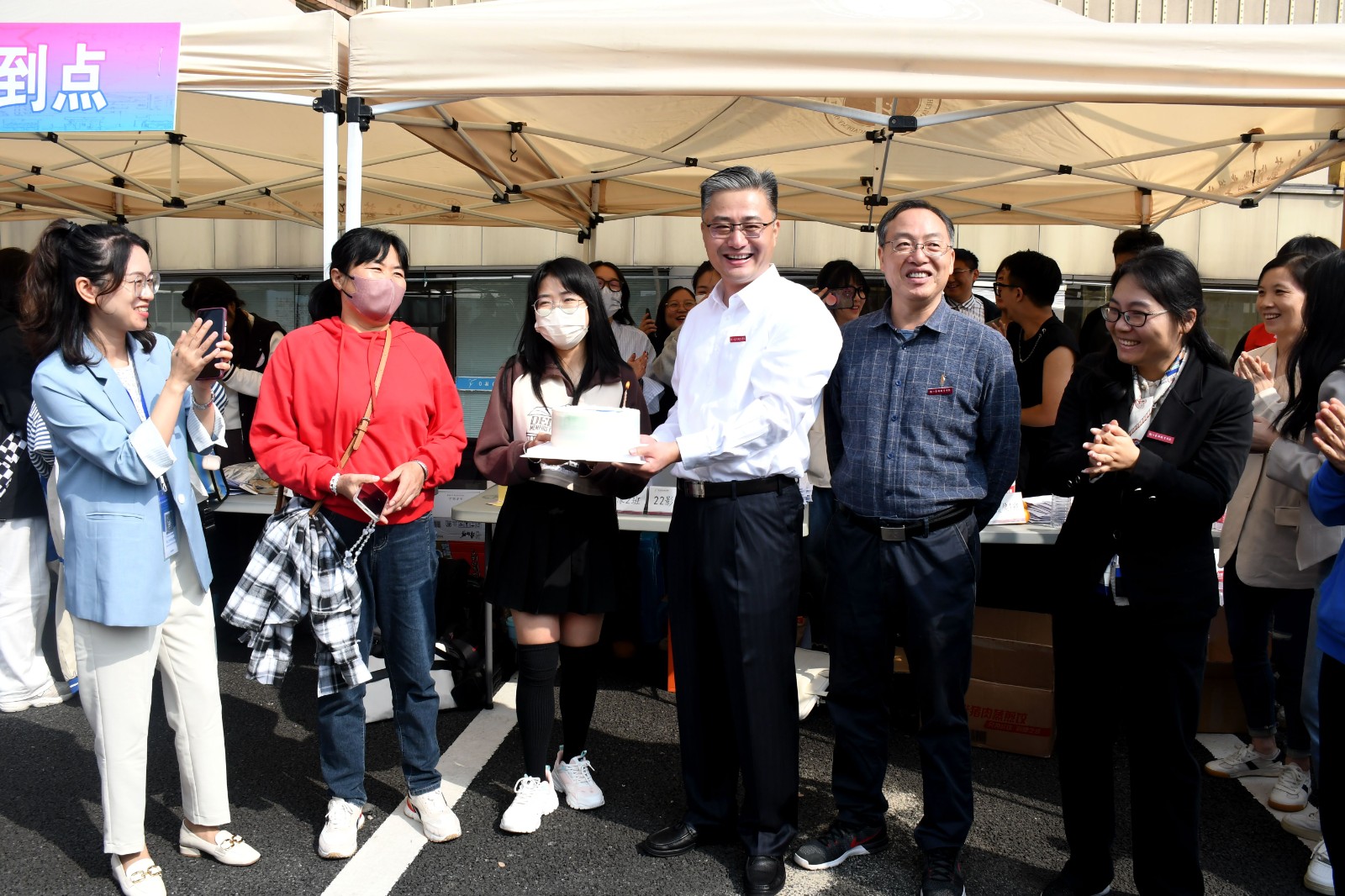 学校为报到当天生日的新同学准备了生日庆祝活动,校领导为新生递上生日蛋糕,送上生日祝福。志愿者们拿着话筒,跟着音乐节奏为“寿星”唱起生日歌,现场暖心满满。戏剧影视学院2022级影视编导班的李熠恬是当天生日新生中的一员。“这个惊喜来得在我意料之外,非常开心,非常感谢学校精心准备的生日庆祝活动。”李熠恬说道。