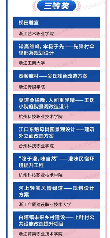微精点亮诗画江南,青春同绘共富蓝图。11月24日,由浙江省文化和旅游厅主办,浙江艺术职业学院、各市文化和旅游局承办,浙江乡村文旅融合研究中心执行承办的首届浙江省大学生助力旅游业“微改造、精提升”创意策划大赛决赛暨颁奖典礼在杭州市良渚国际研学中心举行。