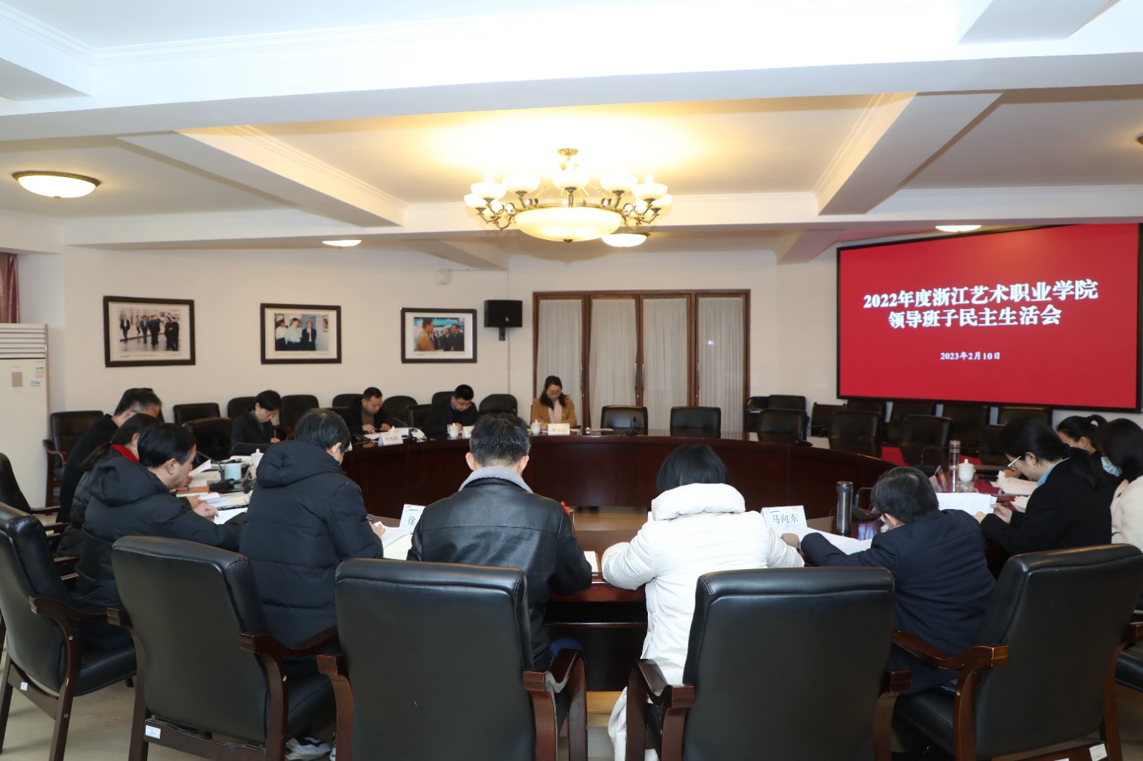 2月10日,浙江艺术职业学院召开2022年度领导班子民主生活会。部务会议成员、驻省委宣传部纪检监察组组长钱国伟作讲话,浙江省文化和旅游厅副厅长、党组成员朱海闵,驻省委宣传部纪检监察组副组长叶向阳,浙江省文化和旅游厅直属机关党委负责人金鹏,省委宣传部干部处三级调研员徐赛红到会指导。校党委领导班子成员参加,校党委书记薛亮主持会议。