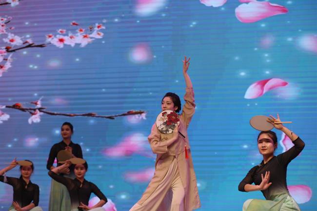 仪式结束后,在场领导与浙阿艺术院校师生共同观摩“组团式”文化援疆成果汇报,欣赏了民乐合奏《茉莉花》、戏歌联唱《天上掉下个林妹妹》《人间天堂》、舞蹈《桃花挽月》、大提琴和钢琴合奏《前奏曲》,舞蹈《扇鼓春风》……丰富多彩的艺术形式,亲密无间的合奏共演,赢得现场阵阵掌声。