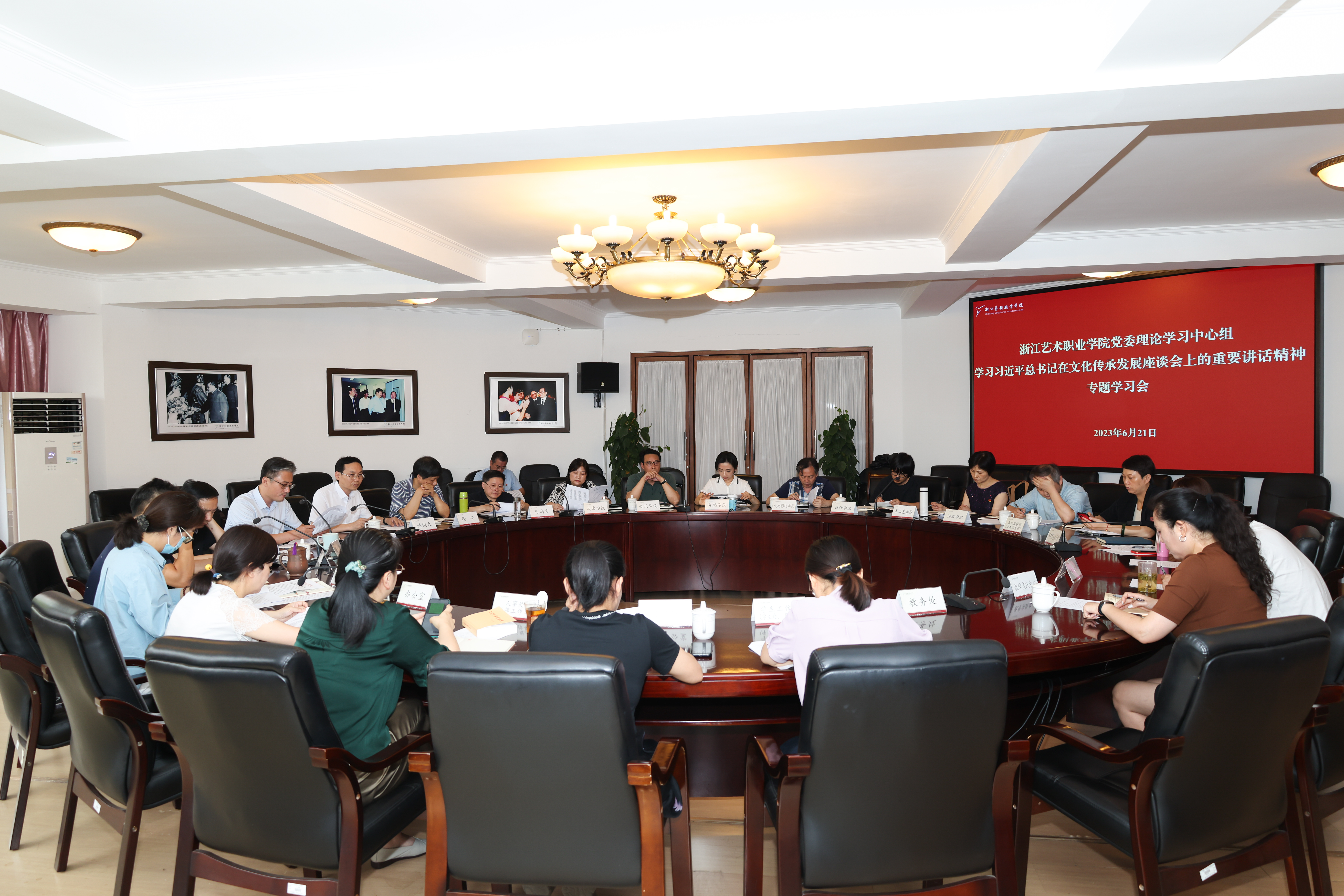 6月21日下午,校党委理论学习中心组举行学习贯彻习近平新时代中国特色社会主义思想主题教育第三次扩大学习会,专题学习习近平总书记在文化传承发展座谈会上重要讲话精神,省委宣传部、省文化和旅游厅相关会议精神。校党委书记薛亮主持会议并讲话,校党委班子成员,职能教辅部门负责人、二级学院党政主要负责人参加学习并作交流发言。