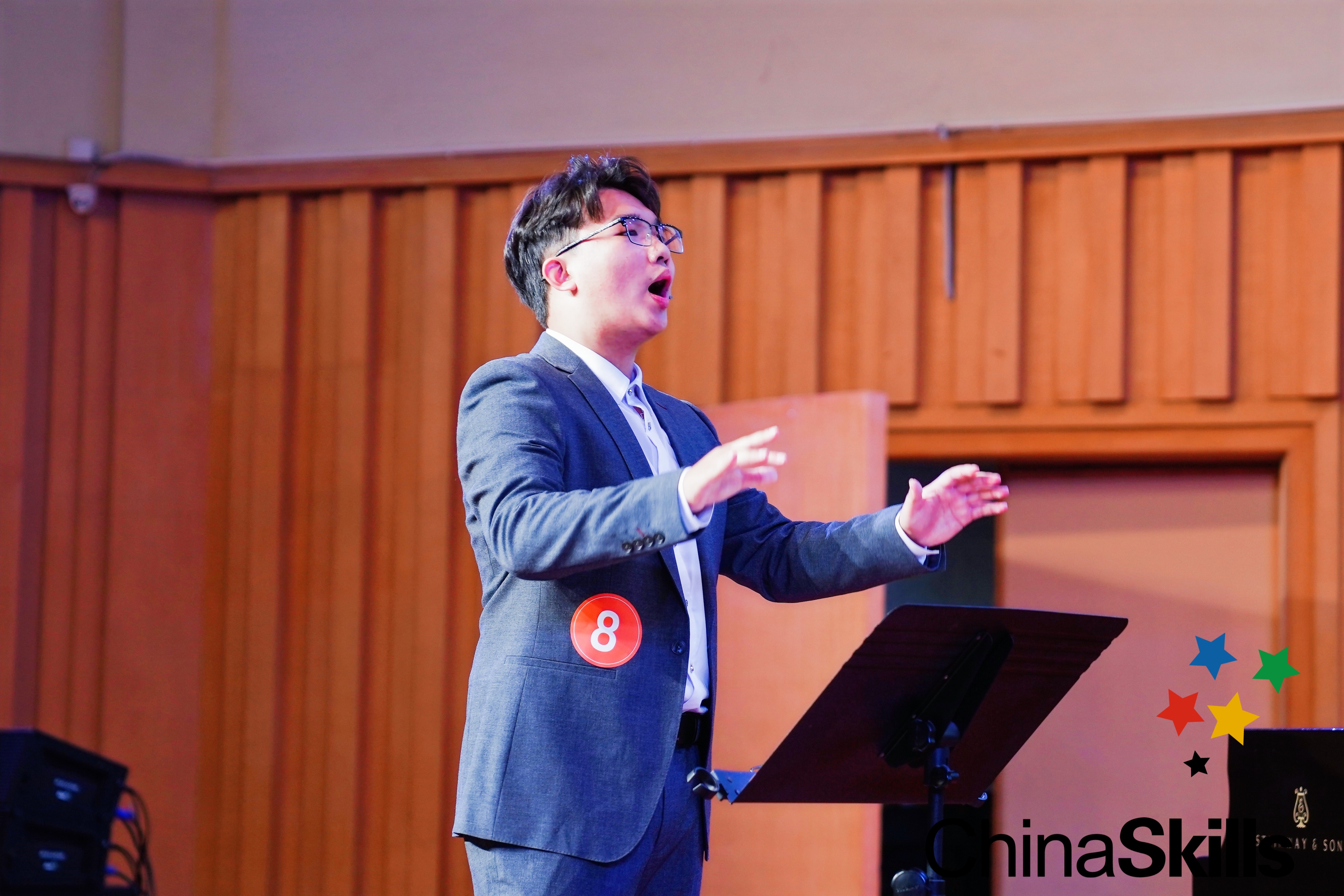 在视唱和艺术素养环节中,选手们要完成新谱视唱、问答题和听辨题。选手们在回答问题中对答如流,展示出对音乐理论基础知识、中国音乐史、西方音乐史和中国民族民间音乐常识方面的知识储备。在音乐编创环节中,选手们化身“小老师”,在台上自信引导合唱演员,带动不同音部,一起配合完成作品的演绎。选手们有“指挥家”的范儿,手势、动作到位,作品的阐述详细,展示了出色的综合能力。