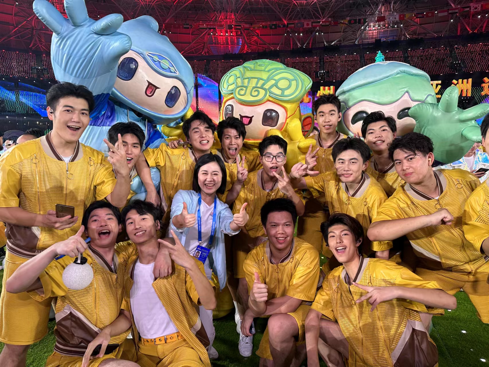 “很荣幸在亚运会闭幕式上被选为了Asia车台的小a领唱。在被选为领唱的那一刻,我明白要更严格要求自己,既要学歌背词又要加强表现力和表情管理。领唱看似很简单,可站在上面一刻都不能松懈。这次经历很难忘,很感激学校给予机会,让我们参与如此重大的演出。”汪施琦说。