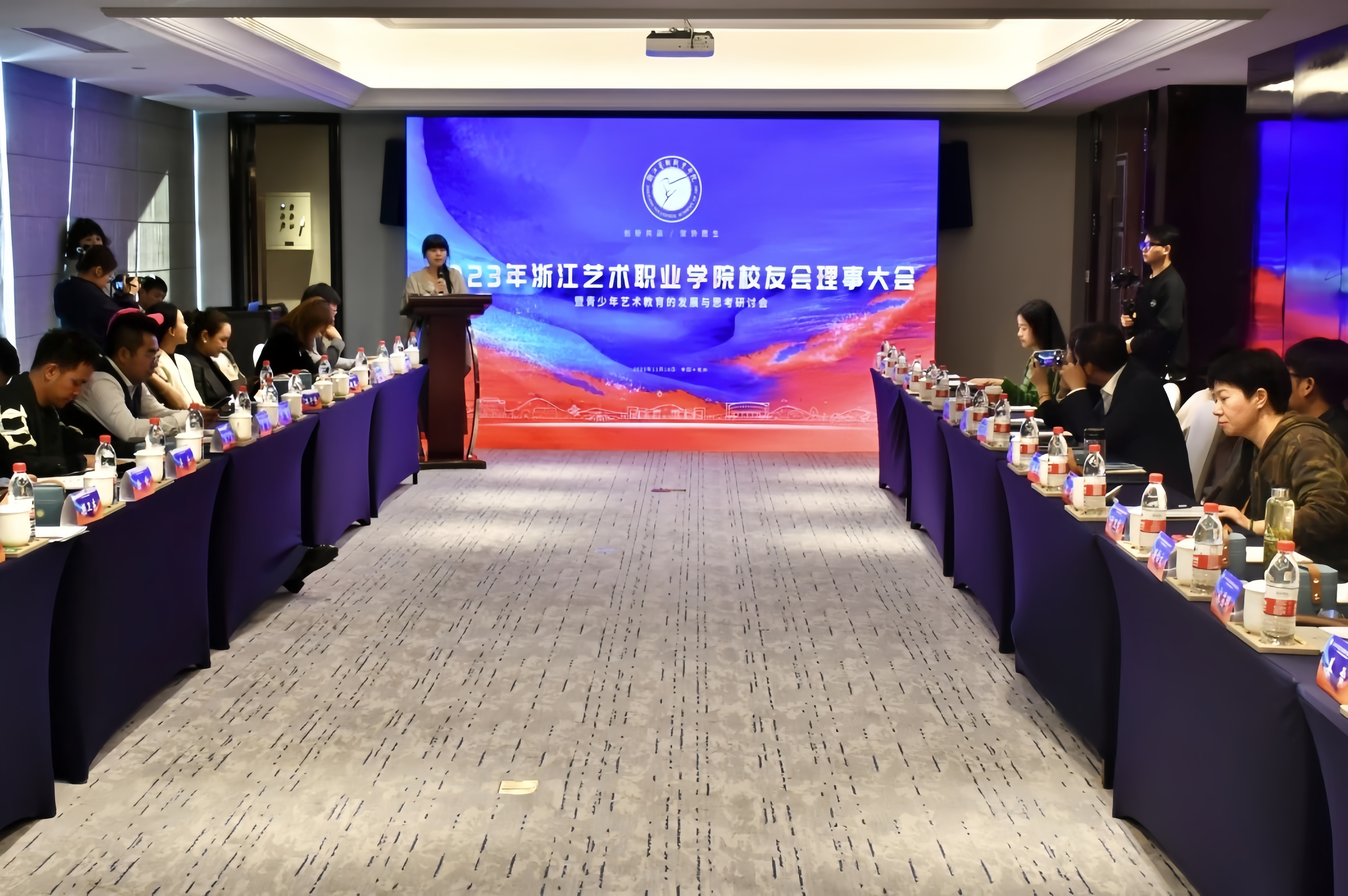 当天下午,2023年浙江艺术职业学院校友会理事大会在杭州滨江开元名都大酒店举行。校友会会长、秘书长、特邀企业代表和45名理事成员共谋浙艺未来。
