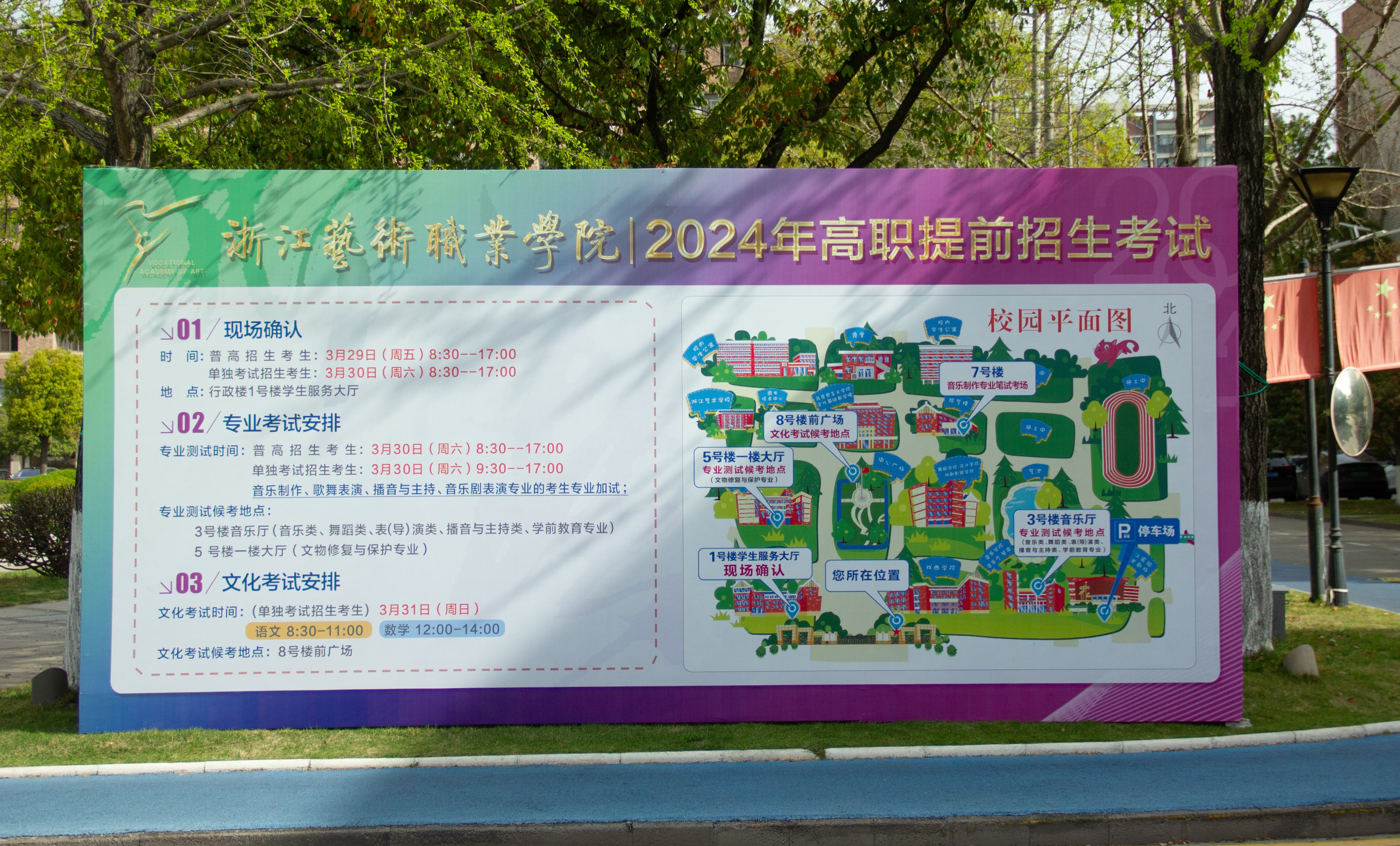3月30日,春意盎然的浙艺校园迎来了一批批青春面孔,她们是来参加浙江艺术职业学院2024年高职提前招生考试的艺考生。一大早,在志愿者的引导下,考生们迎着朝阳,安静有序地进入学校候考。