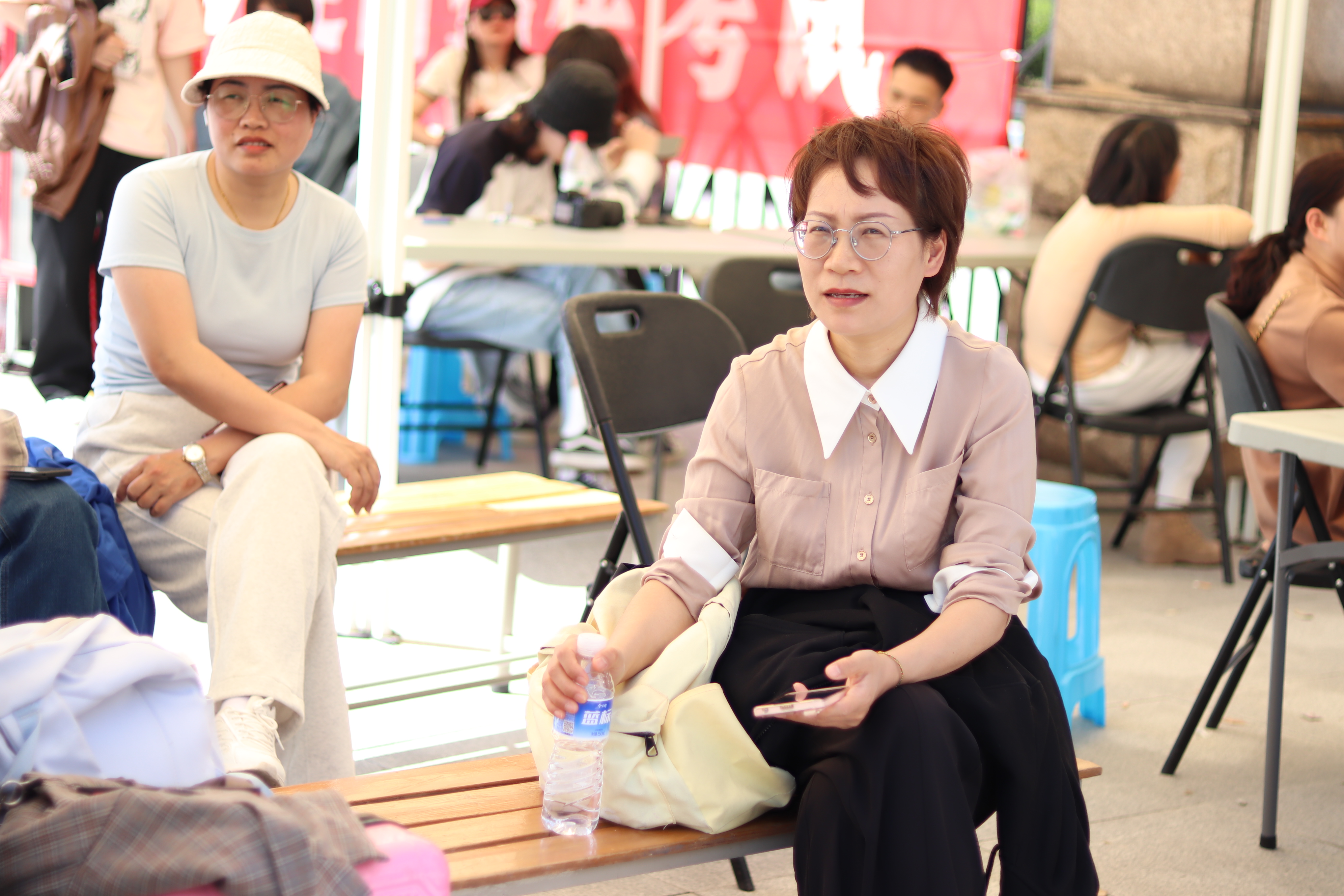 候考区,家长们静静等候,默默为孩子加油打气,“我女儿报考的是学前教育专业,她喜欢和小孩子们在一起,希望通过艺术的方式启迪孩子们的心灵 ,用音乐、舞蹈和故事为孩子们编织一个五彩斑斓的童年,我们一家人都很支持她。”“孩子喜欢艺术,也喜欢浙江艺术职业学院,希望她梦想成真。”