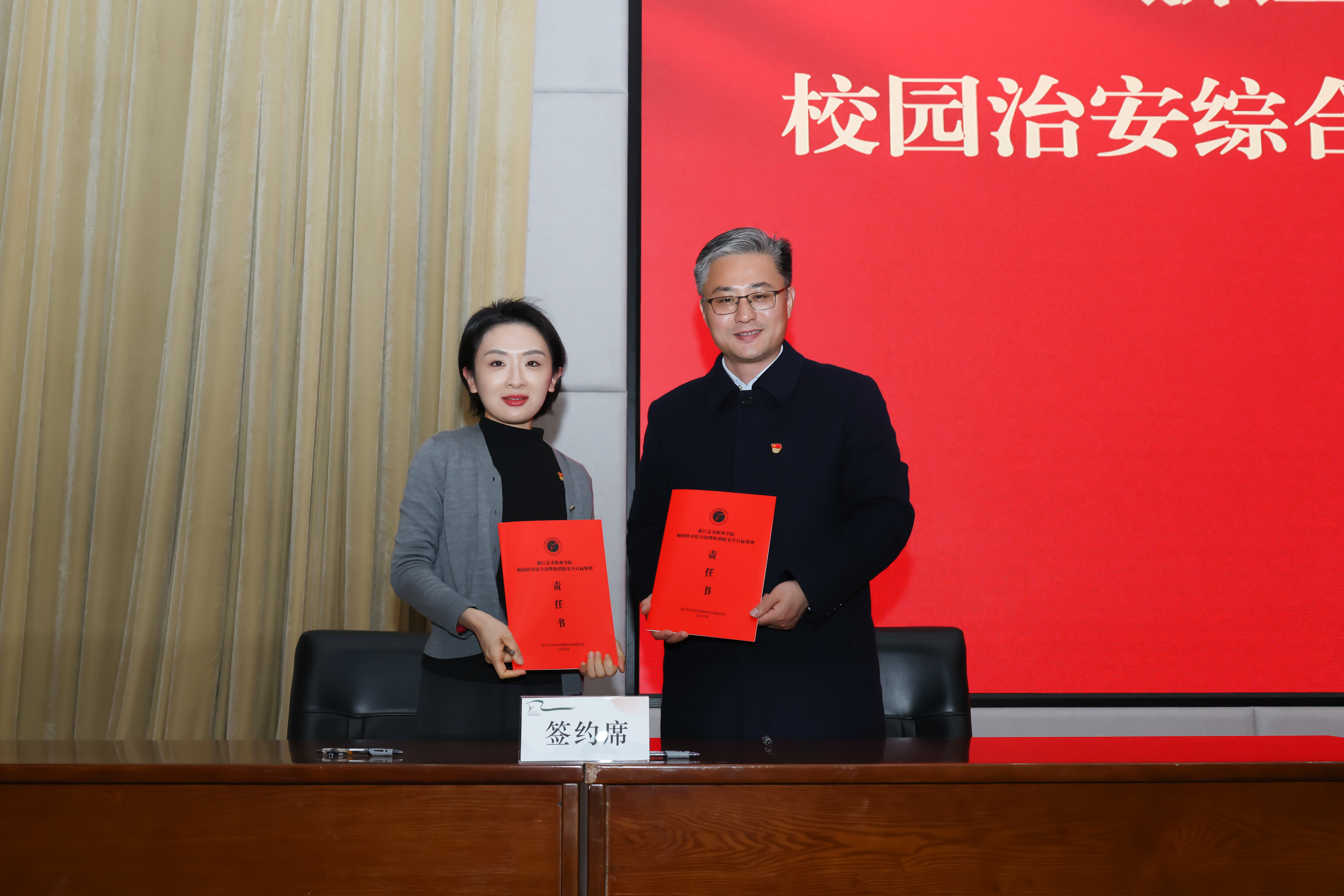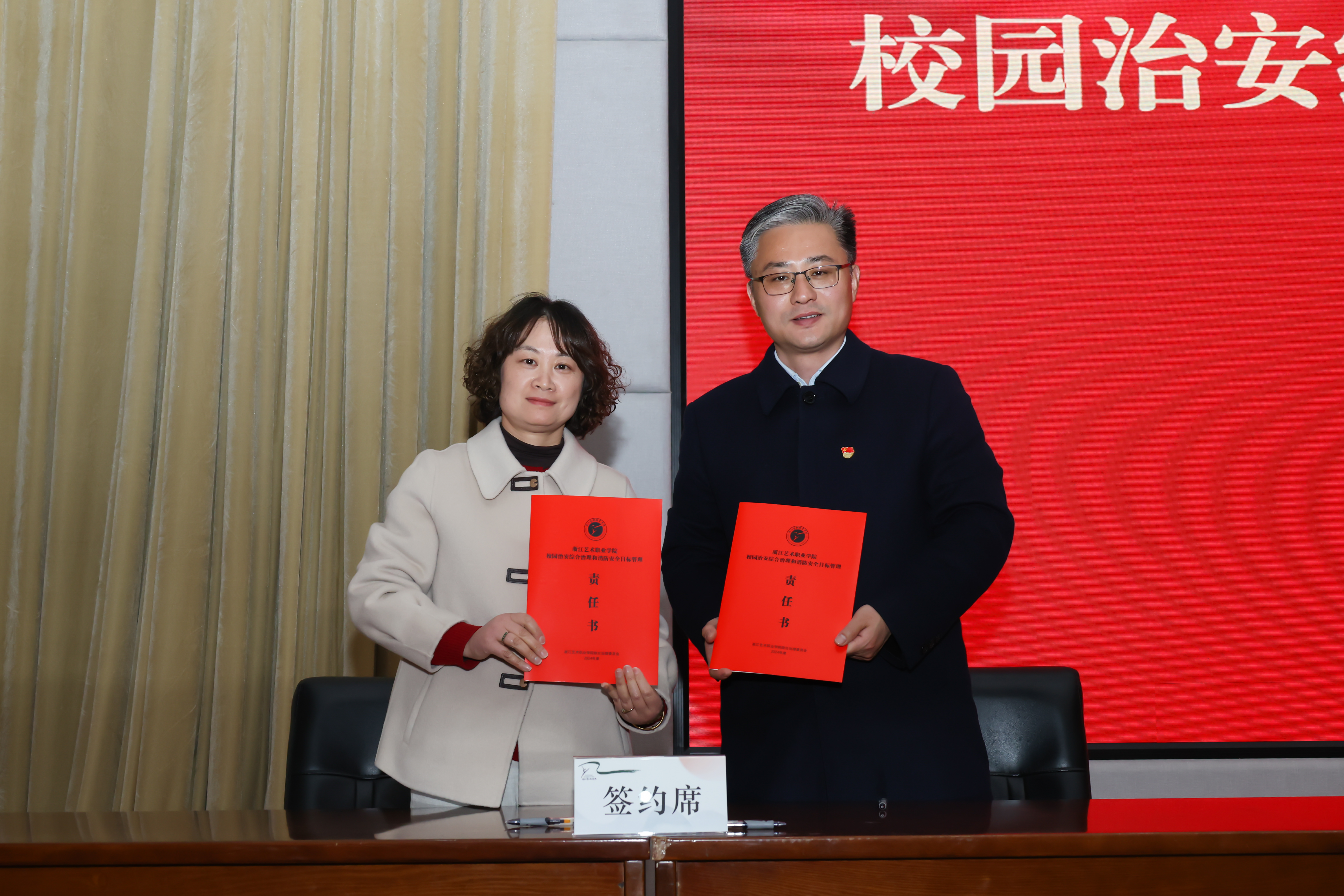 会上签订了2024年度学校党建工作责任书、党风廉政建设、意识形态工作、校园治安综合治理和消防安全目标管理四项重点工作责任书。