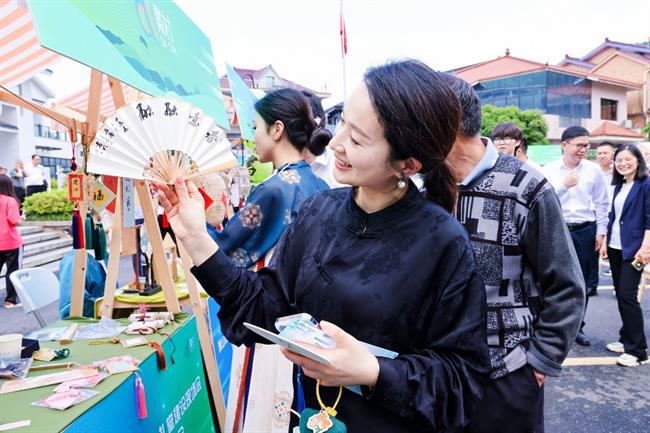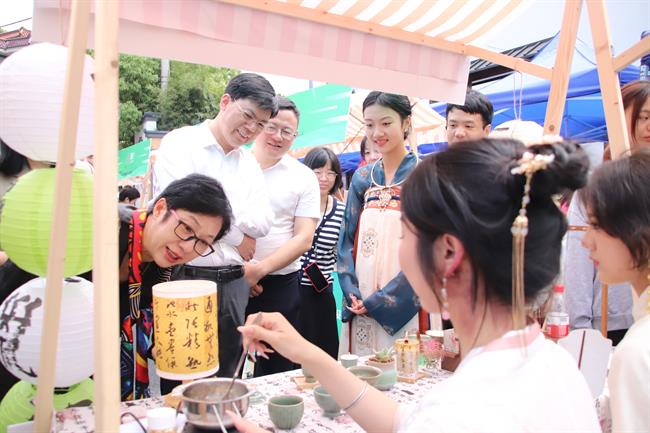 近日,杭州市萧山区2024年农村文化礼堂建设现场会暨文化管家3.0推进会在萧山区戴村镇沈村文化礼堂召开,我校演艺与教育学院与戴村镇校地合作的“国潮市集”尤为引人注目,这也是学校成立文化共富产业学院后实施落实的又一重要成果。萧山区委常委、宣传部部长周胜华,区文联主席黄勇芳,戴村镇党委书记陈红丹,演艺与教育学院领导班子及公共文化服务与管理专业师生参加现场活动。