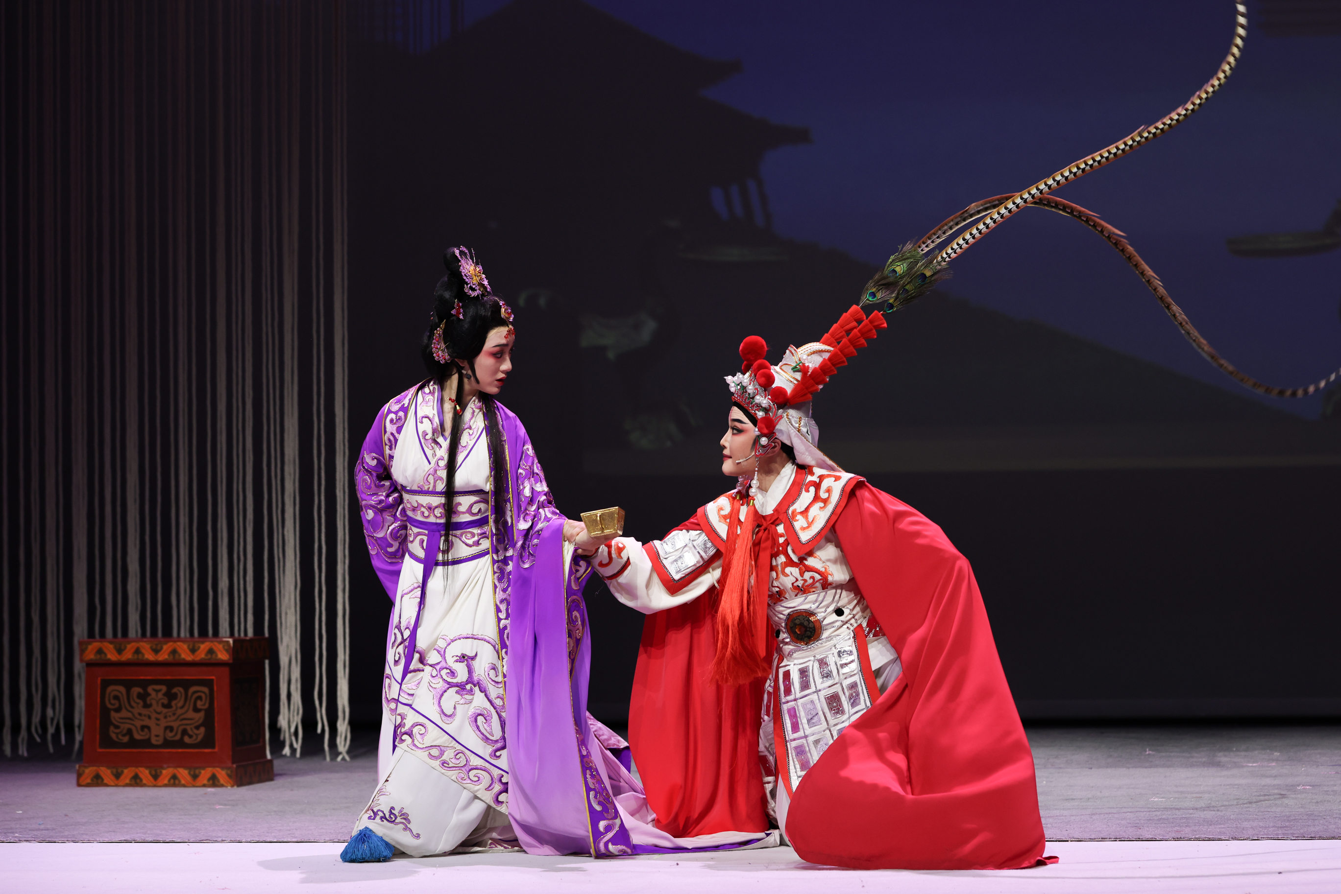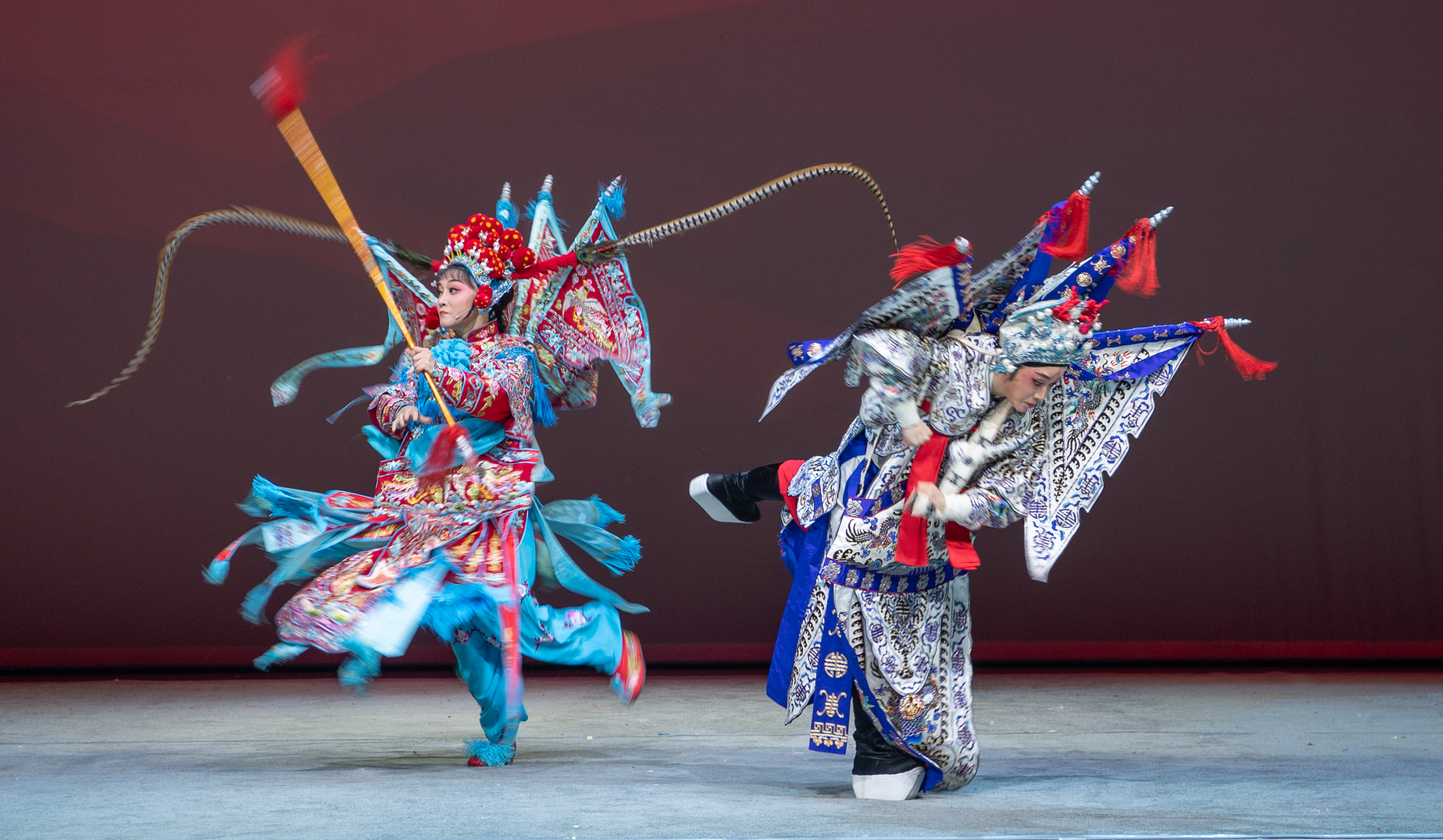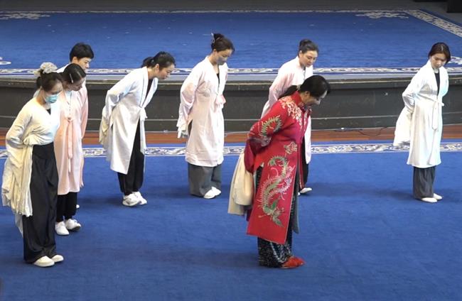 生、旦学员以《牡丹亭·惊梦》《牡丹亭·游园》开场,展示此次培训京、昆、晋、川等多元技艺课堂,展示长绸、褶子功、趟马、甩发功、长水袖等基本技巧,以四功五法展现戏曲艺术的精妙绝技。