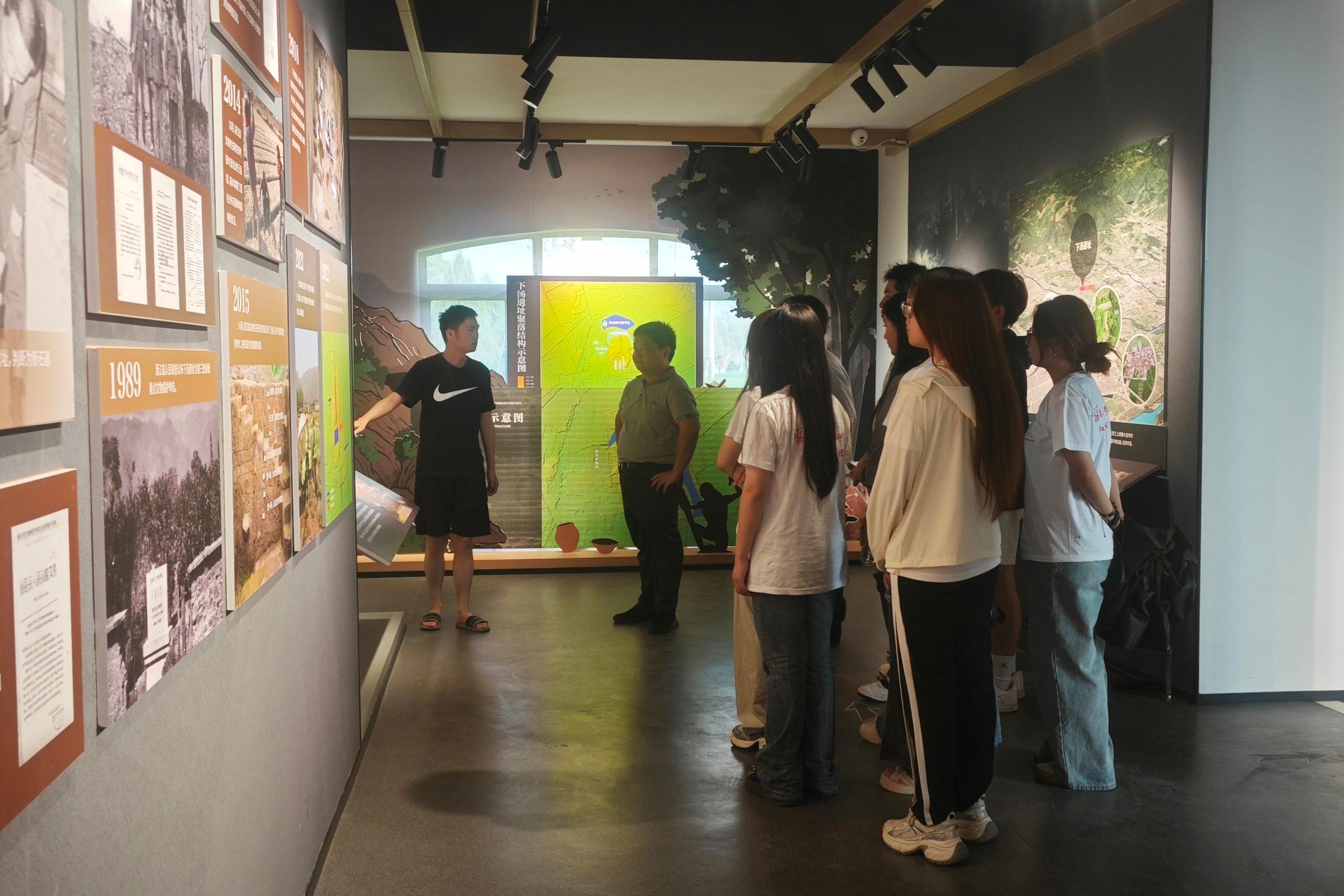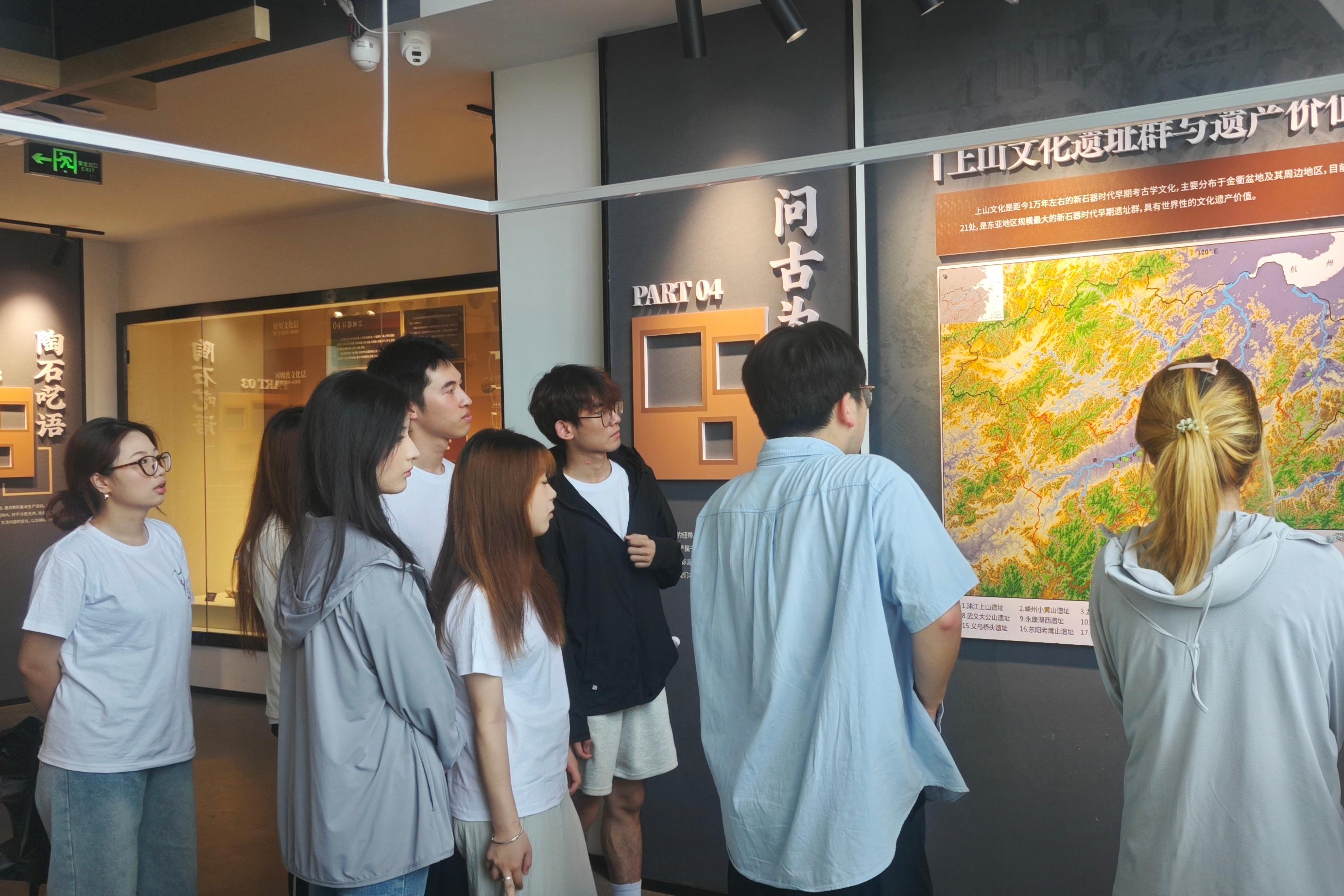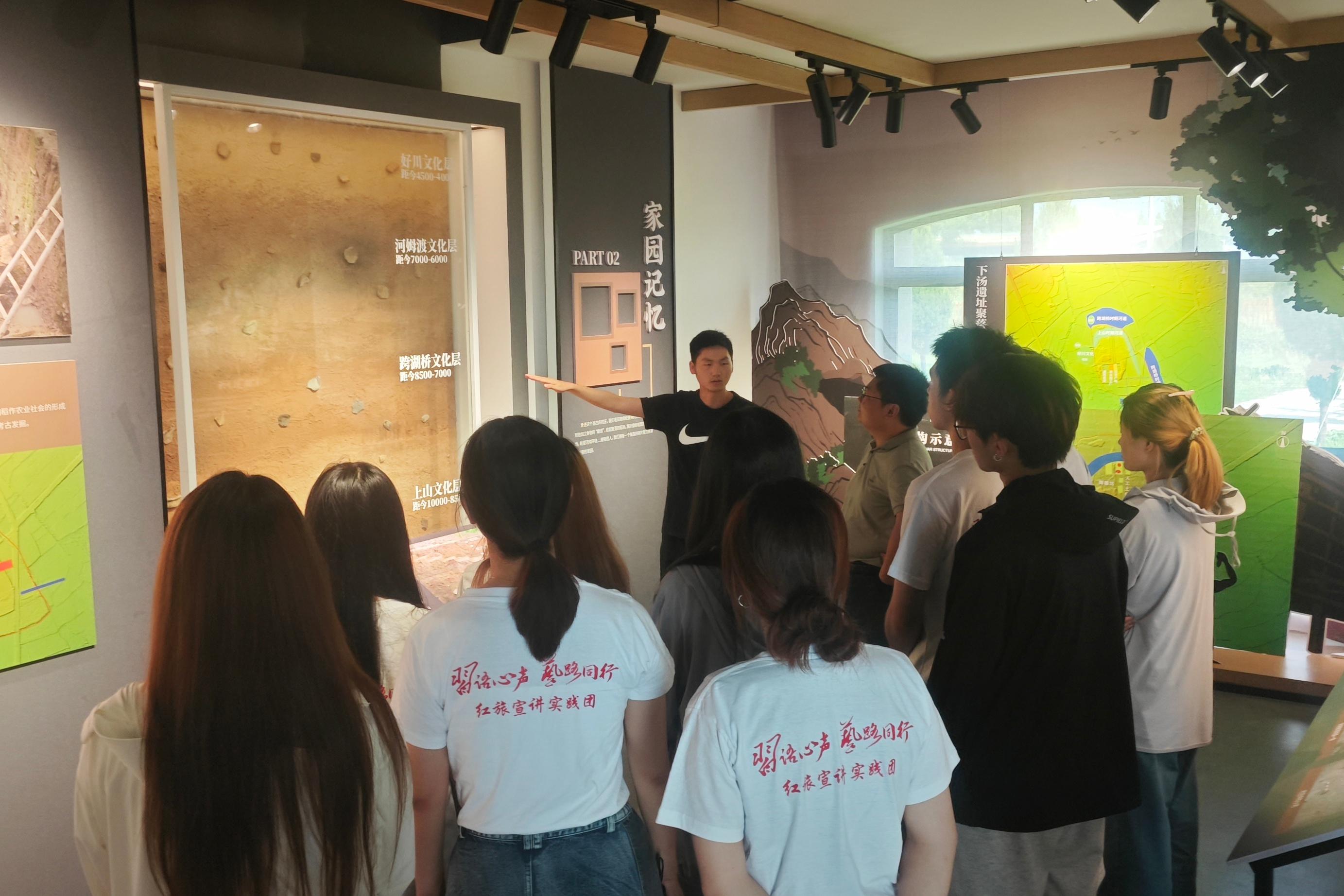 实践团赴横溪镇坎头村、上江垟村和下汤村调研。参观坎头村农民杨梅合作社,了解杨梅种植基地的销售模式。观摩上江垟村的古建筑群,了解了旅游产业现状。实地查看了下汤遗址的考古挖掘现场,感受中华历史文化遗产。