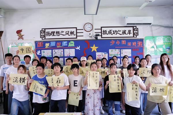 实践团赴横溪镇小学为50余位小学生开展了防校园霸凌知识讲座与古诗词、书法、绘画、手绘扇面教学课程。通过通识教学提升小朋友们的自我保护意识与语言表达能力,以古诗词和艺术课程教学,激发他们对艺术的好奇心与探索欲。墨香四溢,书法千秋,一笔一韵,体会中华传文化。彩笔绘梦,匠心独运,一幅幅美丽的画作,焕发灿烂的光彩。