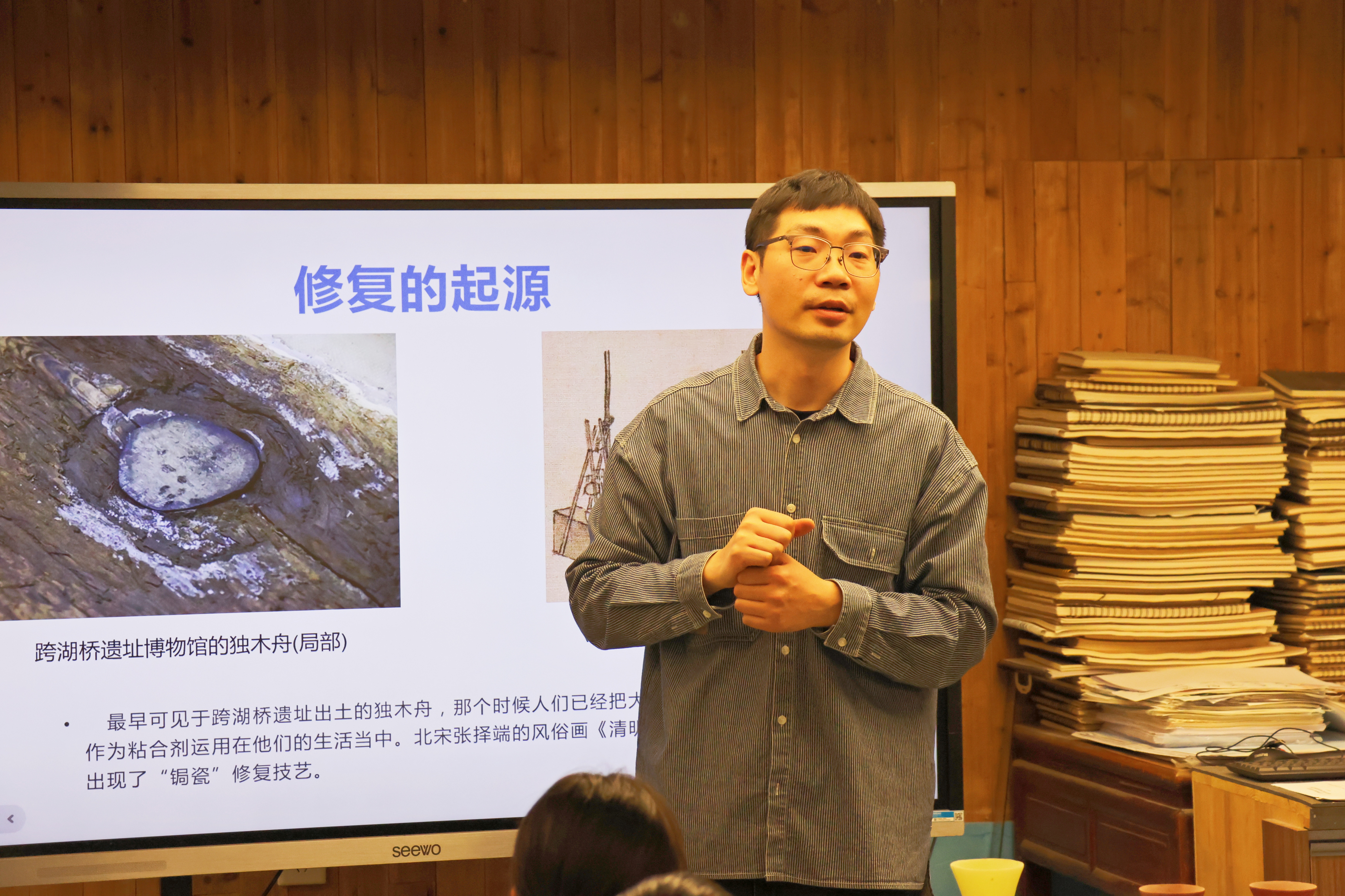 施俊天以《文物修复与保护:一场中华文明的探源之旅》为题,从“什么是文物、为什么要修复文物、文物里的优秀传统文化”三个方面,带领同学们走进文物的世界,在认识文物、理解文物的过程中,感受中华优秀传统文化的博大精深。