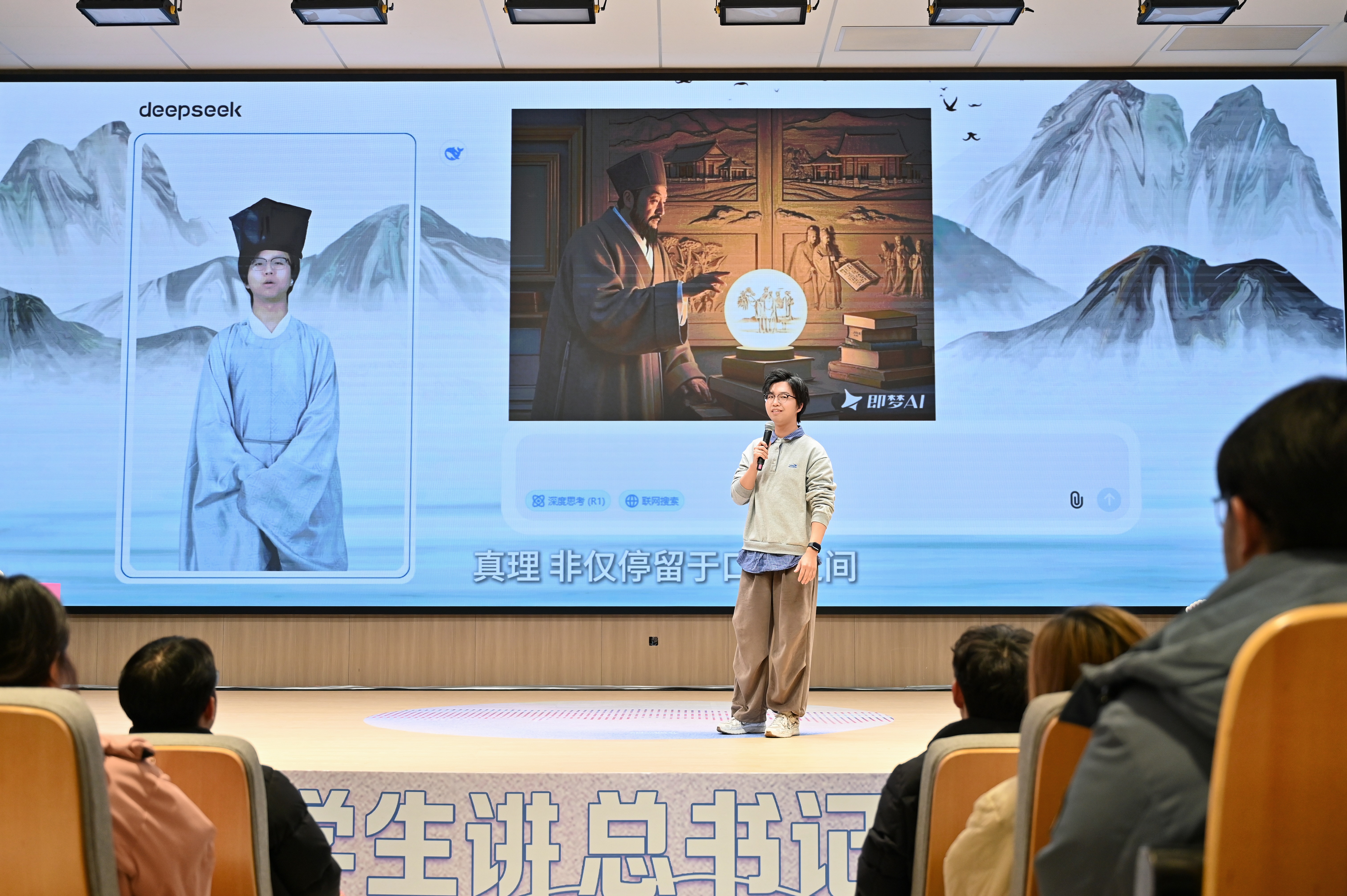 “第一视点”专栏作为宣讲作品打磨的主要素材库,为宣讲员提供了源源不断的灵感。专栏主创、浙江日报记者陆遥受邀聆听了全场宣讲。“我看到了‘第一视点’里关于总书记故事不一样的表达,”陆遥对“阳明心学”主题的“AI+宣讲”印象深刻,“宣讲员发挥专业优势,结合全网热点AI大模型,用网络语言重构了年轻人对阳明思想的认同,”在陆遥看来,“AI王阳明”让总书记关于鼓励学习传承与转化运用阳明文化的思想更加可感可知、生动鲜活,“这种二次传播的范式非常00后”!
