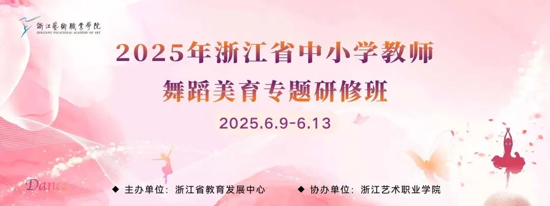 6月9日至13日,浙江省中小学教师舞蹈美育专题研修班在浙江艺术职业学院举办。此次研修班是我校承办的首个浙江省中小学教师素质提升培训项目,也是浙江省教育发展中心与我校携手推进的首个合作项目,旨在提升中小学教师的舞蹈美育水平,推动舞蹈美育在中小学的普及与发展。