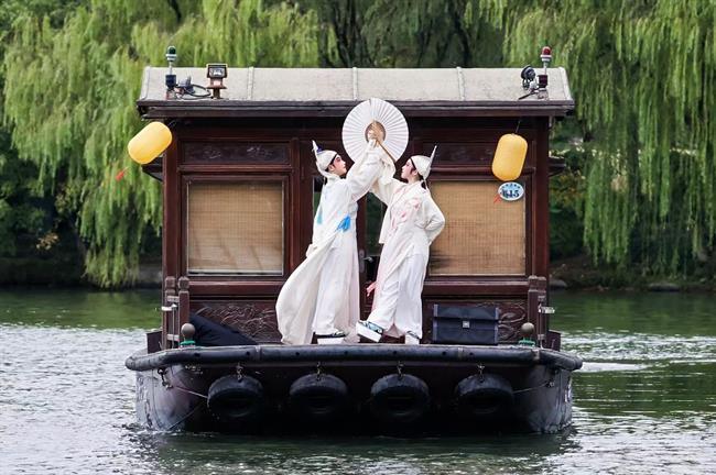 演出中,我校师生充分展现出扎实的专业素养与灵活的应变能力:博物馆内的近距离表演,精准把控肢体细节以传递细腻情感;摇橹船上的动态呈现,克服环境干扰保持动作协调统一;廊桥、草坪等开放空间的演出,巧妙利用自然音效与光影,让舞蹈与湘湖山水融为一体。师生们的精彩表现,赢得现场观众与业内嘉宾的一致好评,成为湘湖山水间一道亮眼的 “艺术风景线”。