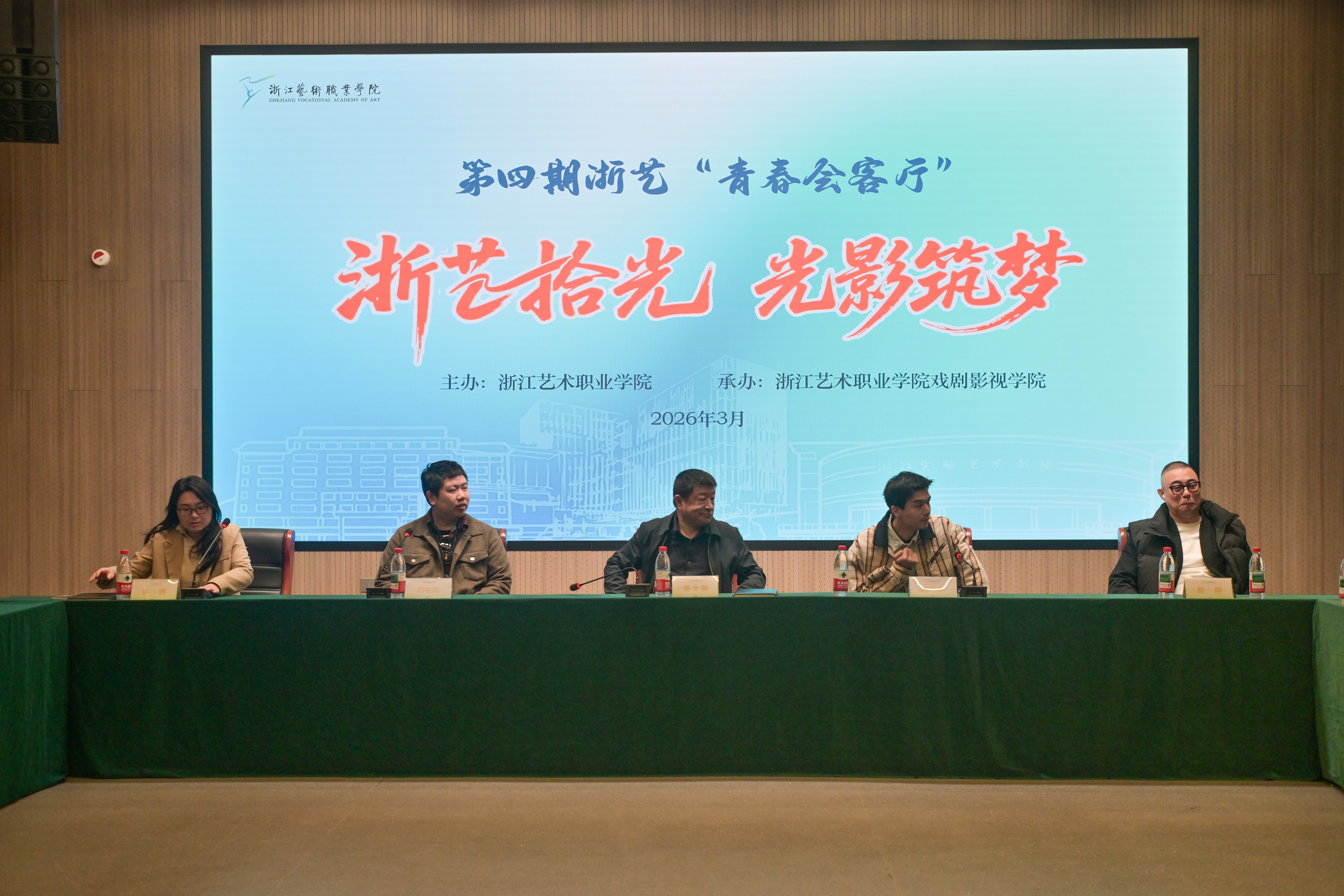 3月25日,由浙江艺术职业学院主办,戏剧影视学院承办的第四期“青春会客厅”活动在教学综合楼A102报告厅举行。本次活动以“浙艺拾光,光影筑梦”为主题,特邀北京国际电影节天坛奖“最佳男主角”、2019届戏剧影视表演专业毕业生陈伟鑫,亿级流量导演(监制)、2020届影视多媒体技术专业毕业生蔡东泽,与戏剧影视学院师生围坐畅谈,共赴一场关于成长、热爱与坚守的青春对话。