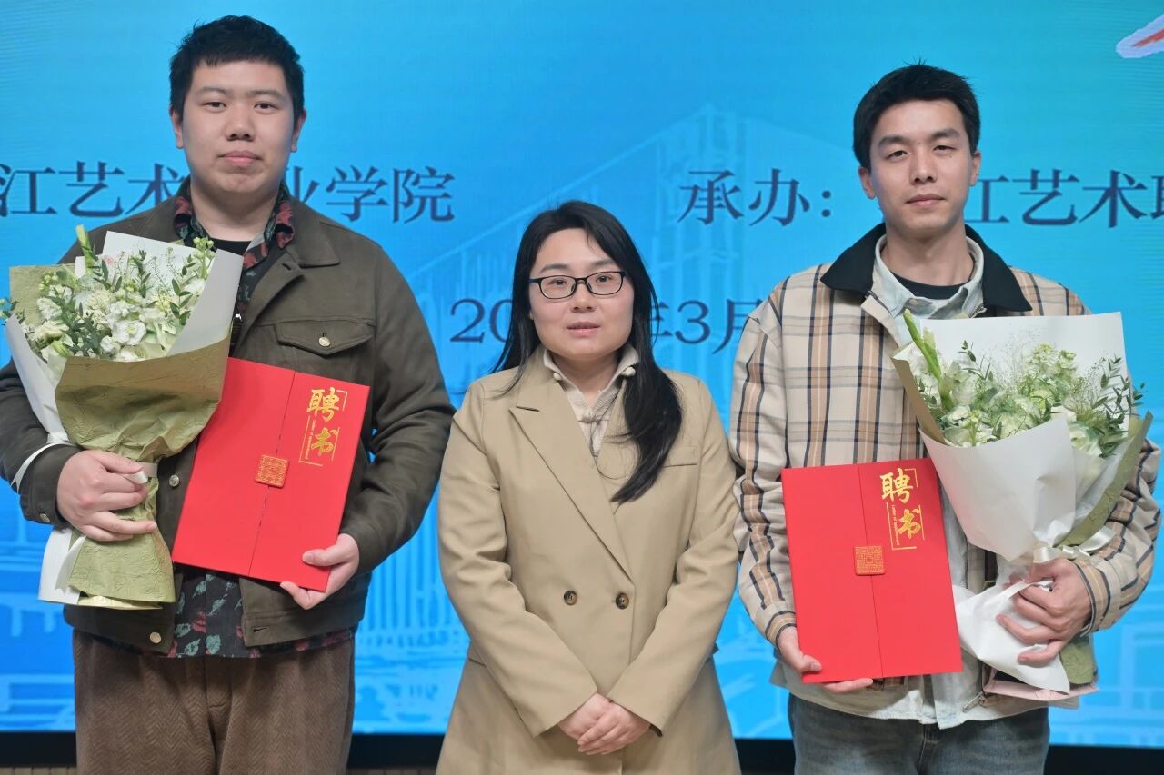 活动最后,戏剧影视学院党总支书记许瑛向蔡东泽、陈伟鑫颁发校友导师聘书,诚挚邀请两位校友常回“家”看看,持续搭建母校与校友之间的沟通桥梁,把行业一线的宝贵经验、前沿动态带回校园,为戏影学子的专业成长、职业发展提供更多精准的指导与助力。