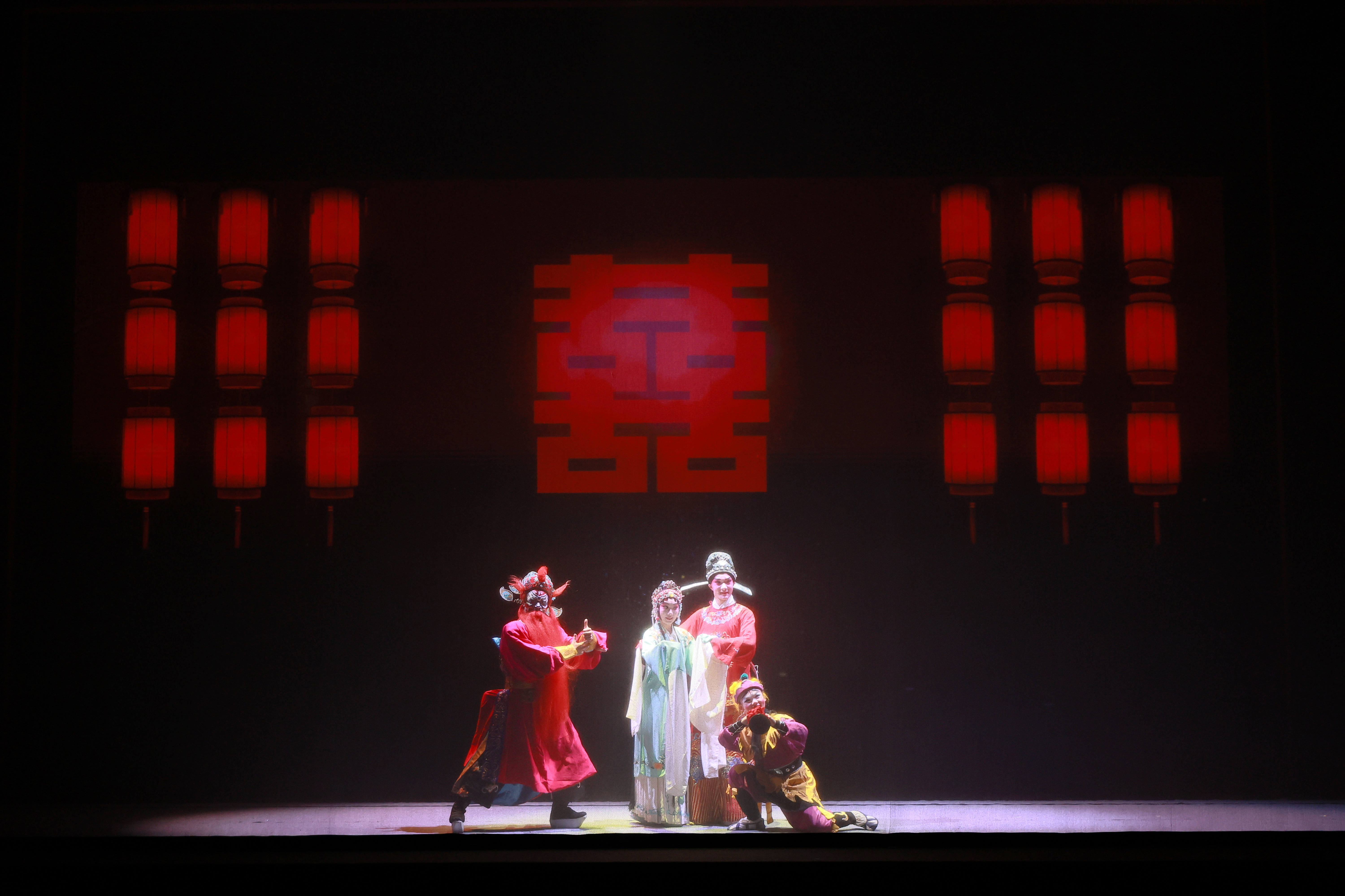 第一篇章“起”,班社挑担启程,《荆钗记》《白兔记》《拜月亭记》《杀狗记》四大南戏的经典旋律响起,让南戏的火种在舞台上向四方传递;