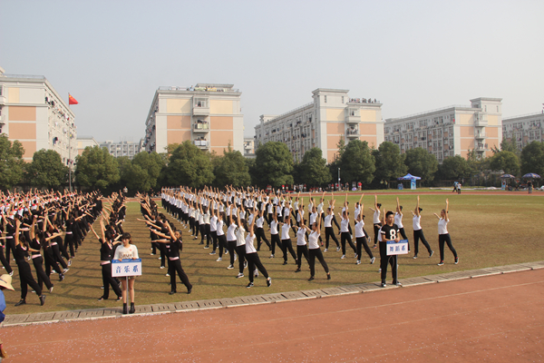 一大早,操场上都是同学们排练广播操、团体操、队形方阵的身影。每年,我们舞蹈系都会为运动会队形方阵、广播操、团体操而忙碌,而每年的成绩,我们舞蹈系都是名列前茅。今年运动会,由12编导班自行编排团体操,13舞蹈班全体大专学生参加广播操比赛,14级新生参加入场式队形方阵。我们各自都在努力,摩拳擦掌为了运动会的这一天。