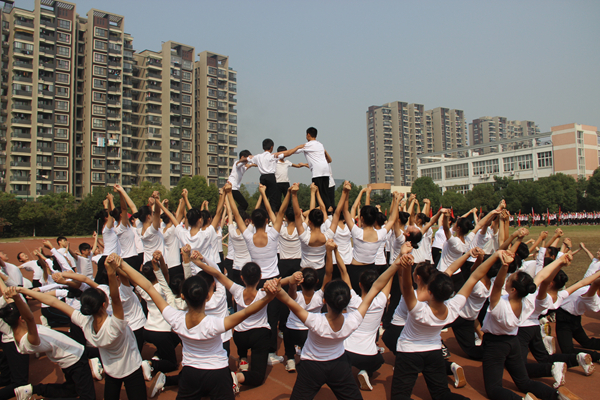 23日下午一点整,我们穿着整齐的服装来到运动场。场地内外围满了人,一旁的立志园公寓顶楼上也站满了人。随着院领导宣布浙江艺术职业学院第十二届运动会正式开始,主持人便开始宣读逐一进场进行队形方阵展示的各系介绍。我们舞蹈系是第一个入场的,同学们穿着白色T恤、黑色练功裤,步伐整齐地走到主席台前,空翻、侧翻、变出一系列队形,赢得各位观众评委的掌声和尖叫!舞台上,我们展示美丽,运动会上,我们展示精彩!