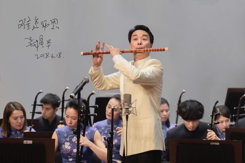 纪念馆分4个版块,浓缩了赵松庭先生的艺术人生、艺术成就、艺术传承和艺术展望。纪念馆的每件展品吴樟华都觉得留存着先生的艺术精神。顶着赵松庭“嫡传弟子”头衔,吴樟华感到既光荣又有压力。光荣,是自己有幸于1980年考入浙江艺术学校,成为赵先生的弟子。1985年至1988年又留校当了青年教师,成为赵先生的助教。1988年在赵先生的推荐下,顺利考入中国音乐学院,成为继杜如松(1985年考入上海音乐学院)、戴亚(1986年考入中央音乐学院)之后又一位考入中国三大音乐学院的赵松庭弟子。2008年又从绍兴艺校校长任上调回浙艺院担任竹笛教师。期间,吴樟华担任过音乐系副主任、附中校长等职,2012年起,担任学校科研处长和创作中心主任。压力,一是来自业界,二是自己给予的。即,今天的吴樟华坐在浙艺院竹笛教师岗位上,培养了多少竹笛演奏人才,写出了多少竹笛独奏曲,研制了多少竹笛科研项目,说白了,离老师的期望有多远,又为老师做了些什么?