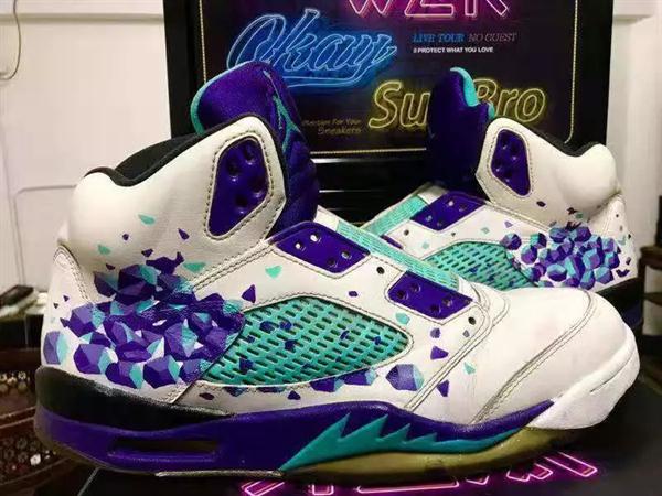 萧天贺说,很佩服设计这些经典球鞋的人,鞋型都是老的,只是在原有的基础上创新,就能引领潮流,征服市场,实在是太厉害了。修鞋的时候,就感觉是在和这些设计师对话。有时候他会去解剖鞋子,去研究鞋子的结构,拆开来又重新组装。有些修复难度大的鞋子,几乎是拆掉重做。把成色比较烂的鞋子翻新,自己的心情也会变好。有时候,灵感来了,也会在鞋子上有所创作。在他的店里摆着一双名为“紫葡萄”的球鞋,他说,鞋子修好后,还取了鞋子的原色,根据色块和鞋子本身的风格,在鞋子上画了一些图案上去。